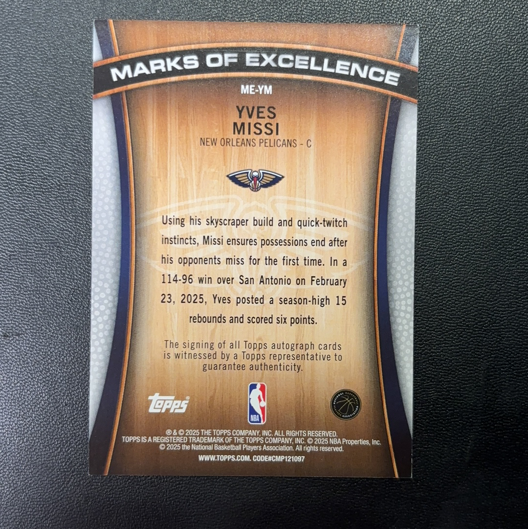 2025 Topps Flagship Yves Missi 伊夫米西 鹈鹕 签字 贴签 Marks of Excellence 卓越签 轻印角白见图 SH008 E641117
