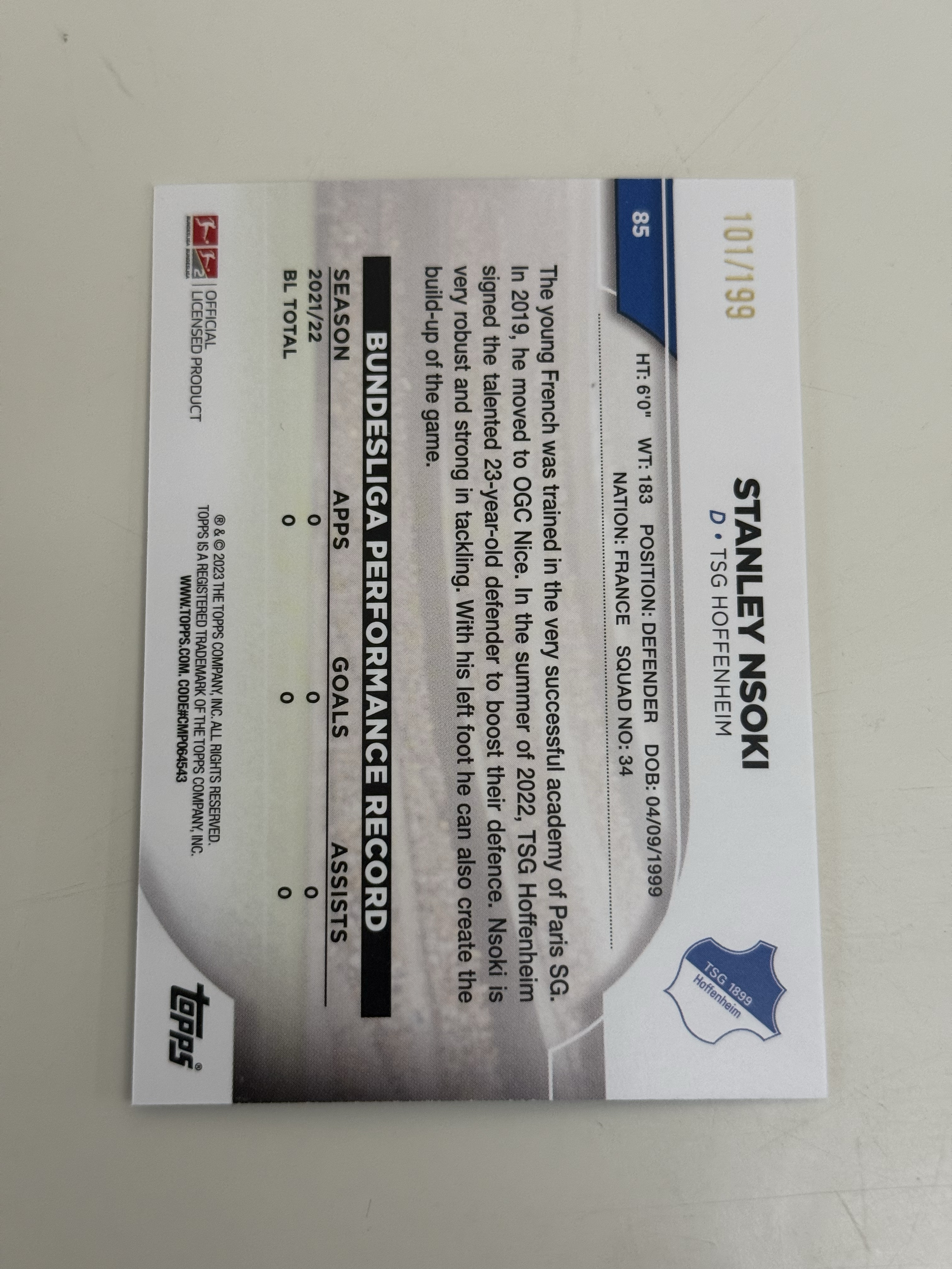 2023 topps 德甲碧玉Stanley Nsoki 德甲 碧玉 霍芬海姆 恩索基 199编 新春碧玉折 多图已拍仔细看图顺丰