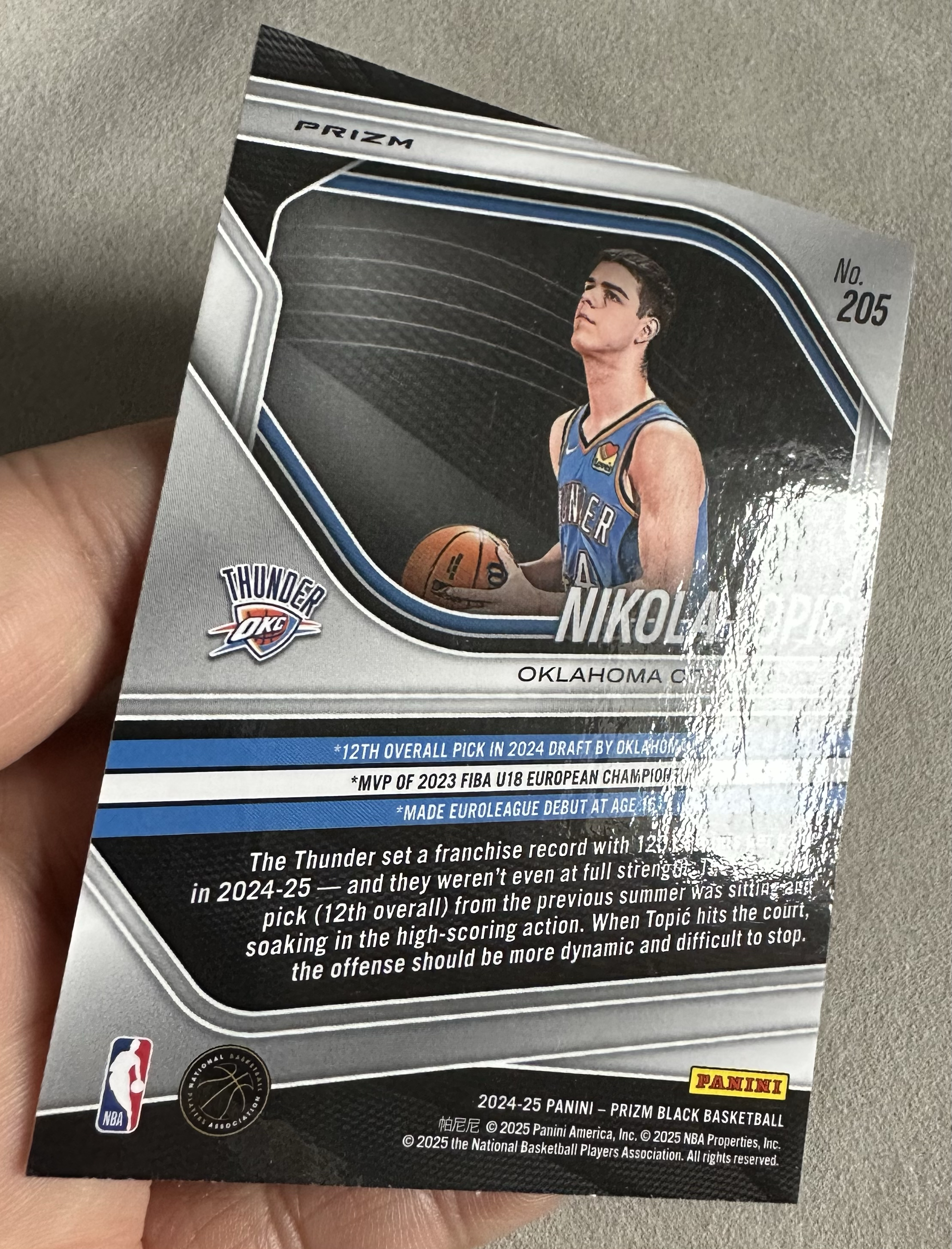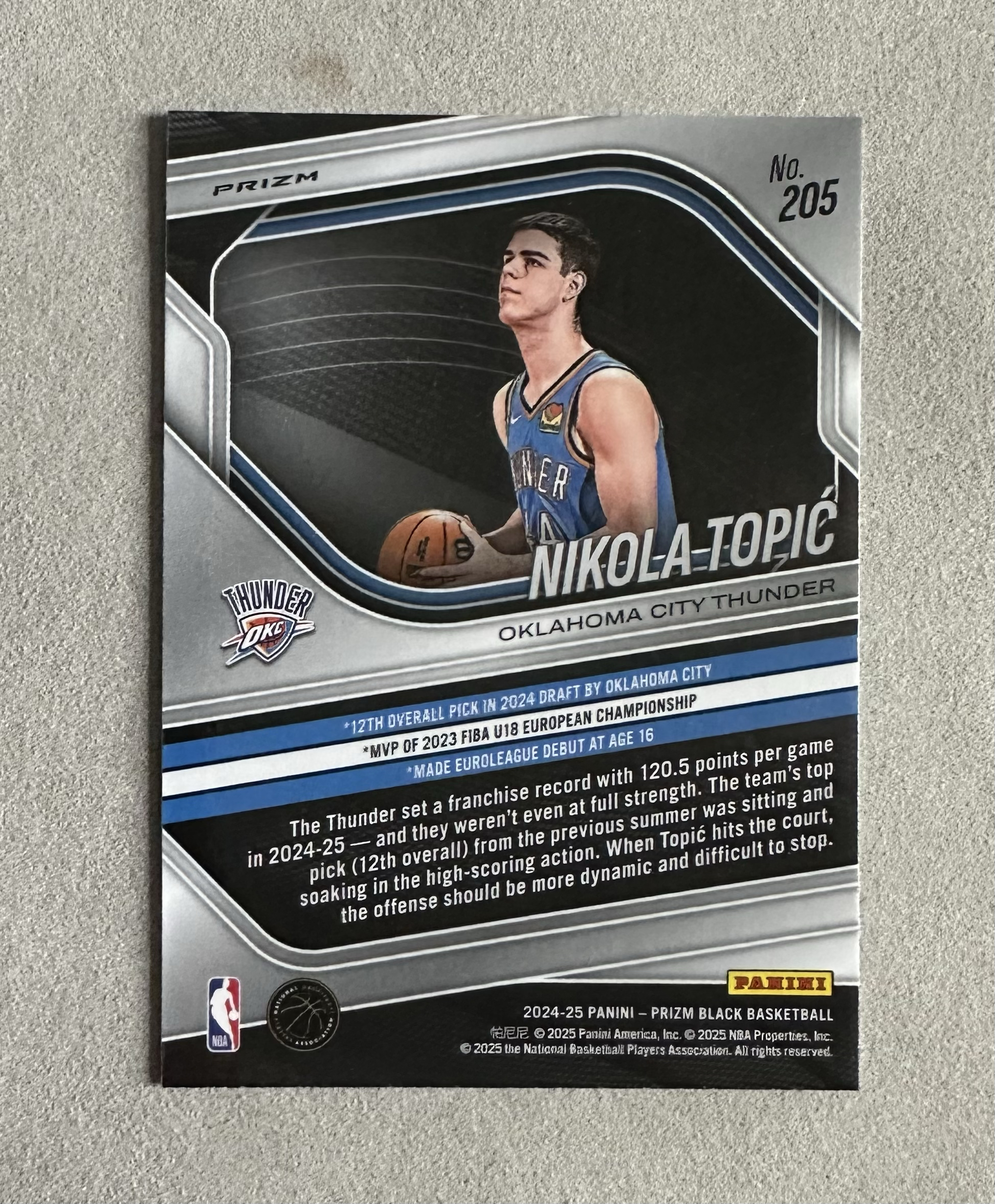 2025 Panini prizm black Nikola Topić RC 雷霆队 新秀 托皮奇 新秀银折 瑕疵如图 卡量稀少 凑套必备(浩哥10)