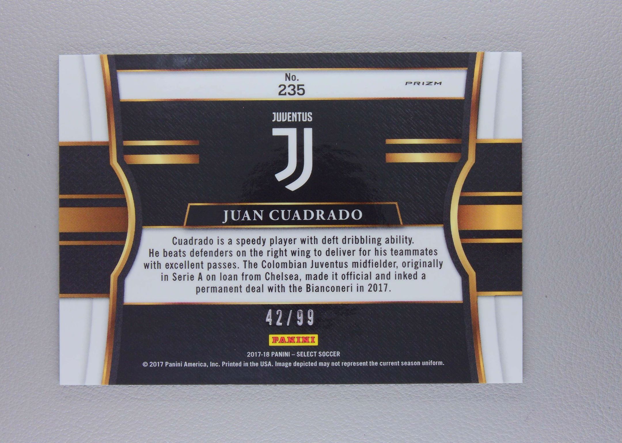 2017-18 Panini select Juan Cuadrado 胡安 夸德拉多 哥伦比亚 佛罗伦萨 切尔西 国际米兰 亚特兰大 元年 99编 尤文图斯 白棋盘折 战神无双拍卡 (旺仔)