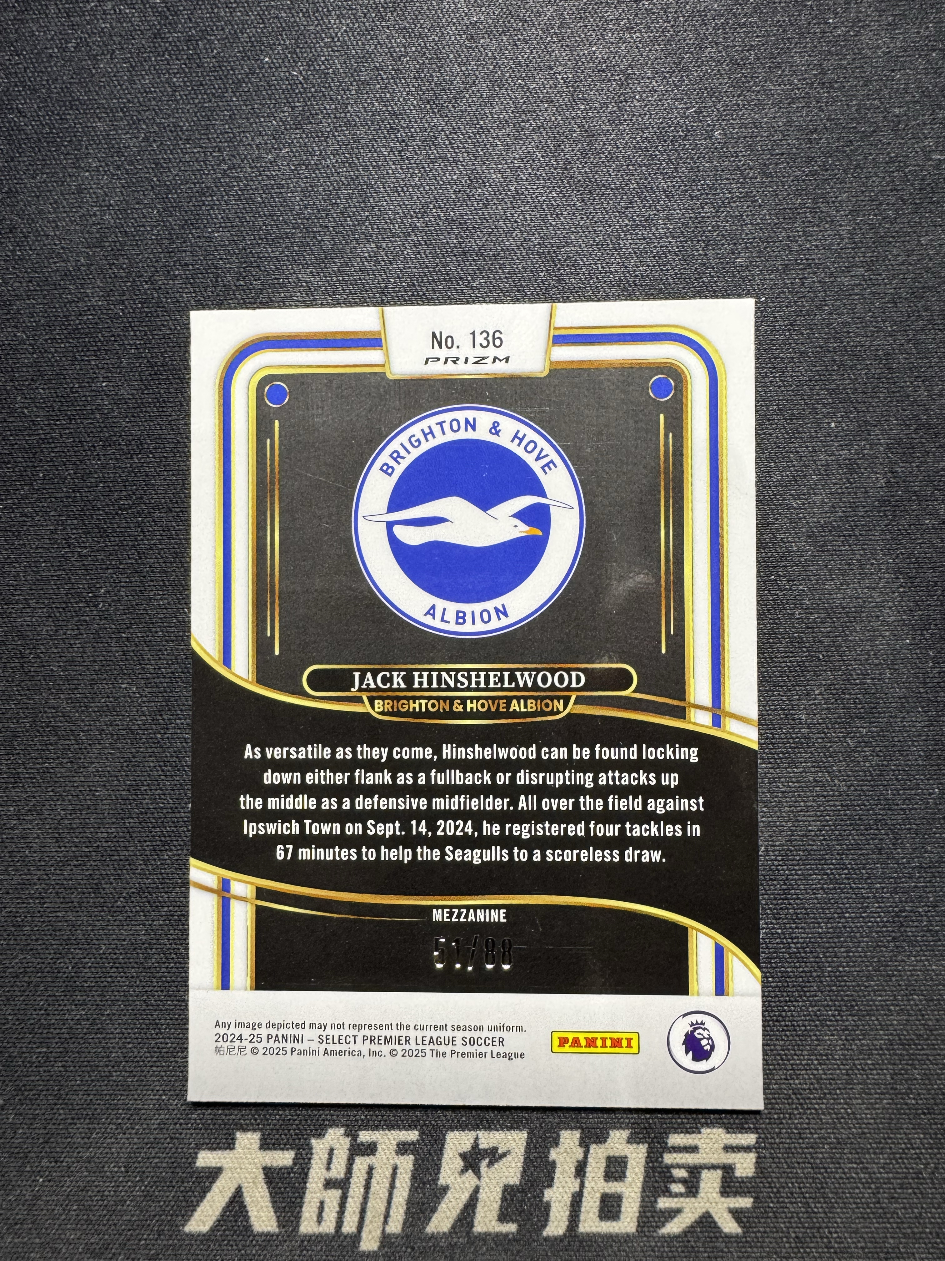 【大师兄拍卖】2024-25 Panini Select Jack Hinshelwood 帕尼尼 英超Select 杰克 欣谢尔伍德 布莱顿 英超 /88编 红波纹折射 通行品 -keith-