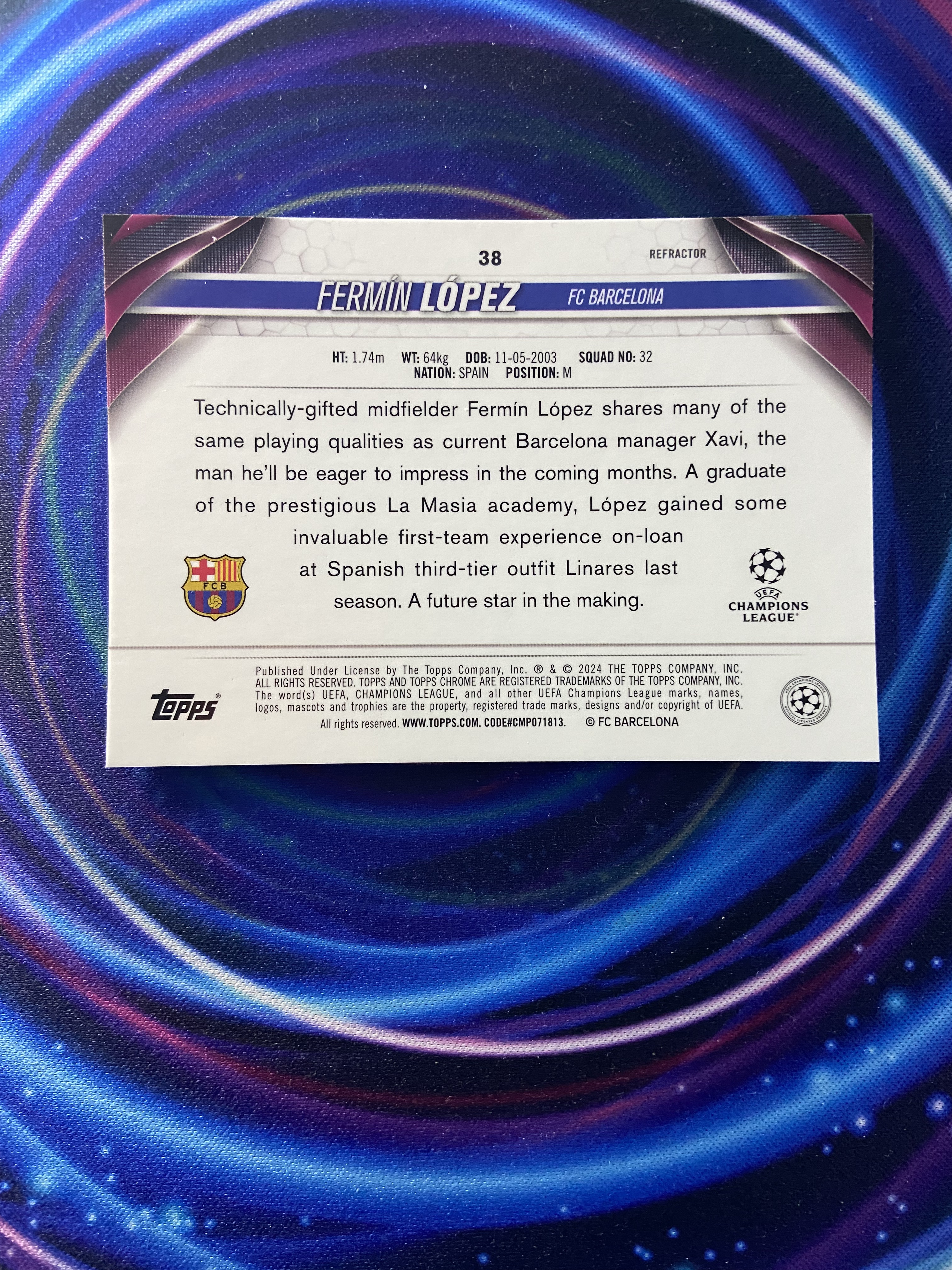 2024 Topps Chrome Fermin Lopez RC 欧冠chrome 巴塞罗那 新秀 费尔明 洛佩兹 银折 折射 西班牙 未来可期 实卡精美 收藏必备【万卡收藏-BLZ】