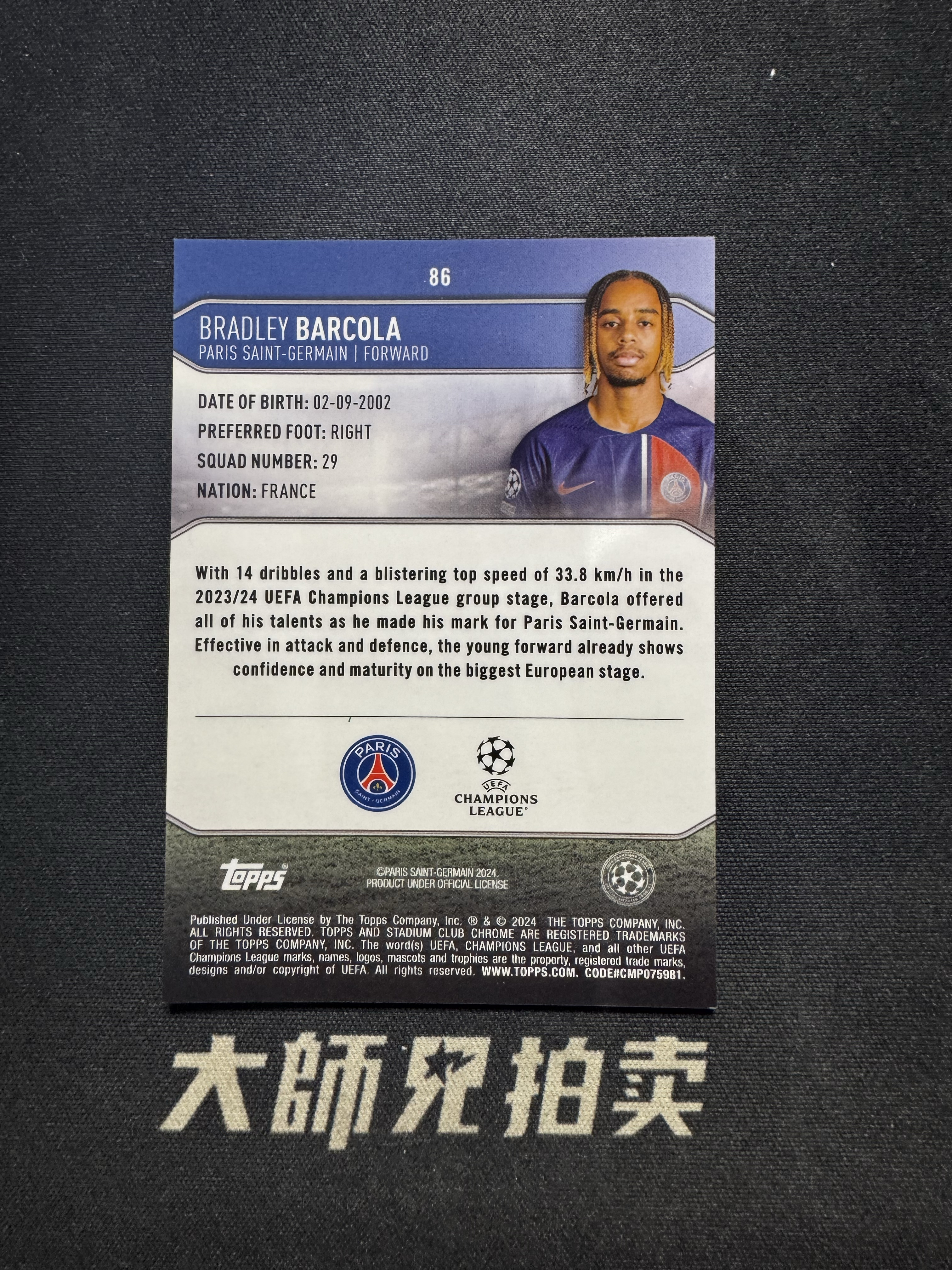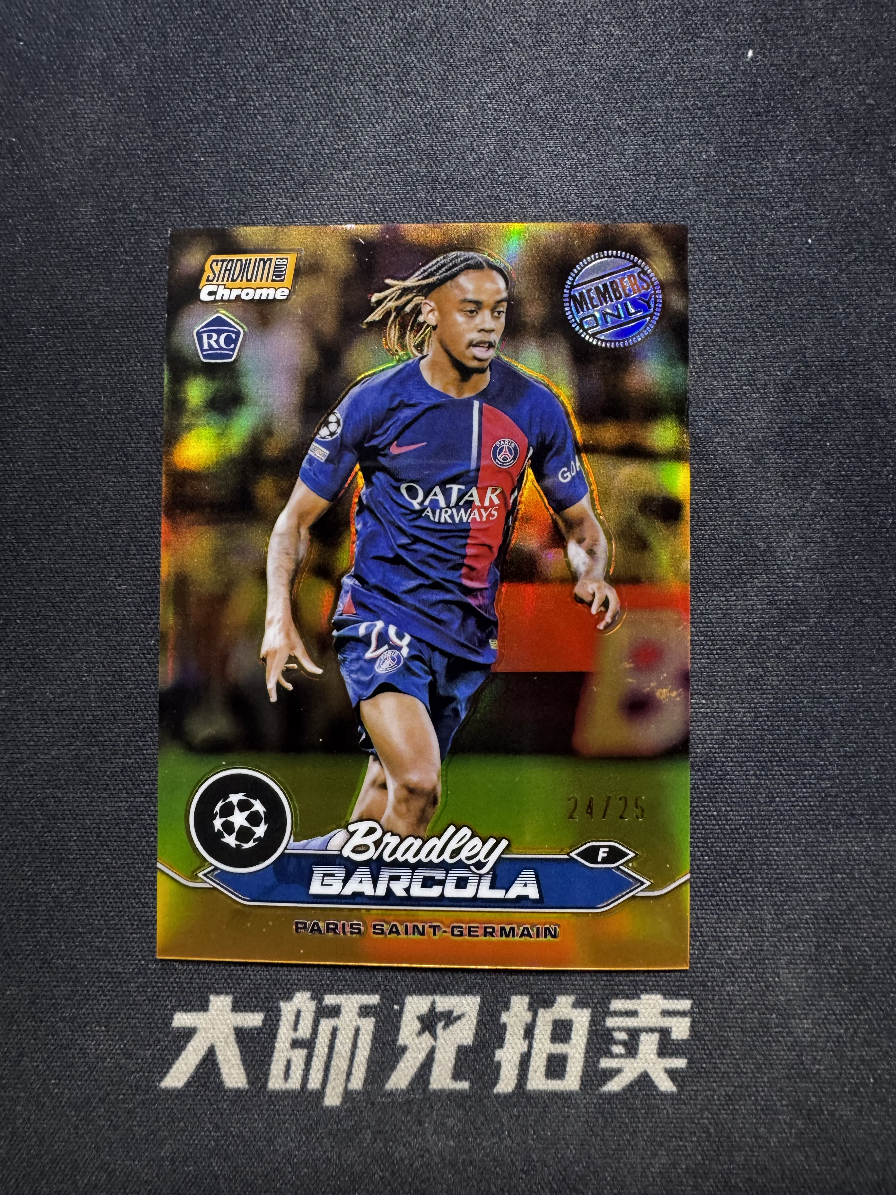 【大师兄拍卖】2023-24 Topps 欧冠竞技场Stadium Club Chrome 巴黎 巴尔科拉 RC新秀 /25编 变化版 橙折base 会员盒独占 法国 里昂 通行品 -keith-