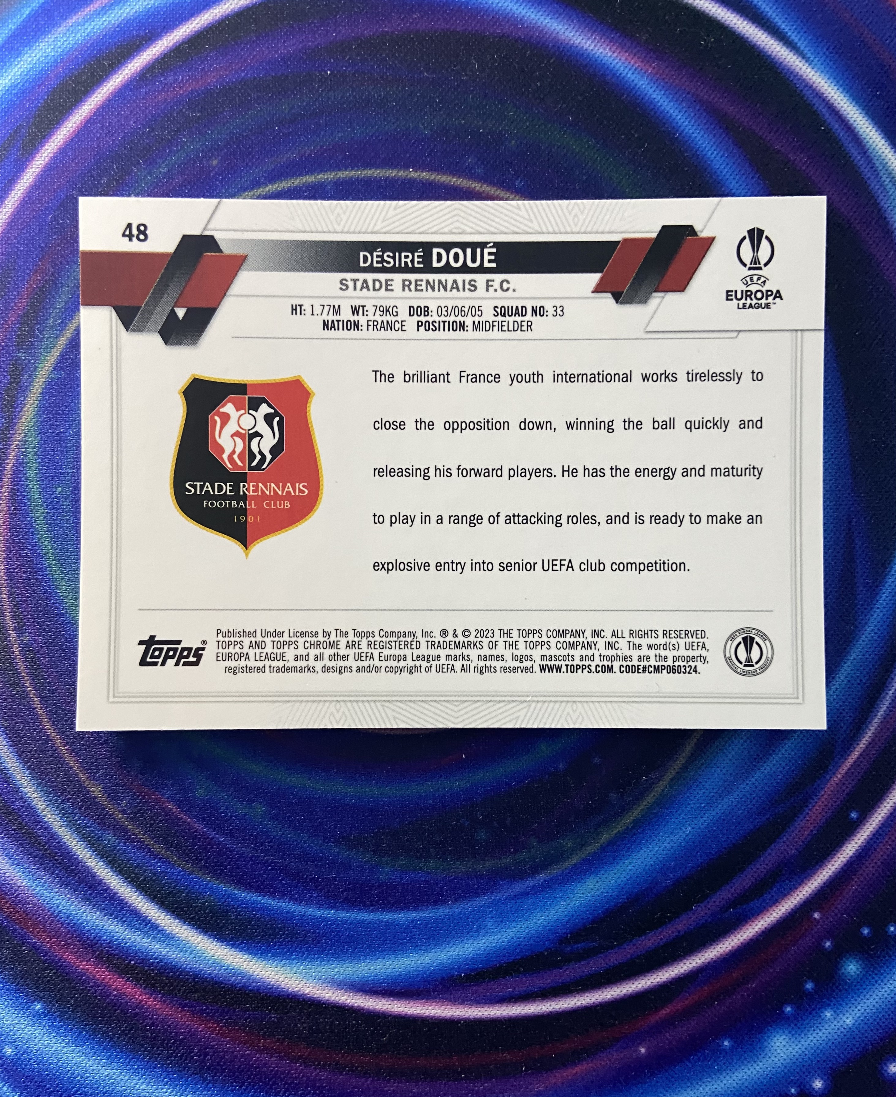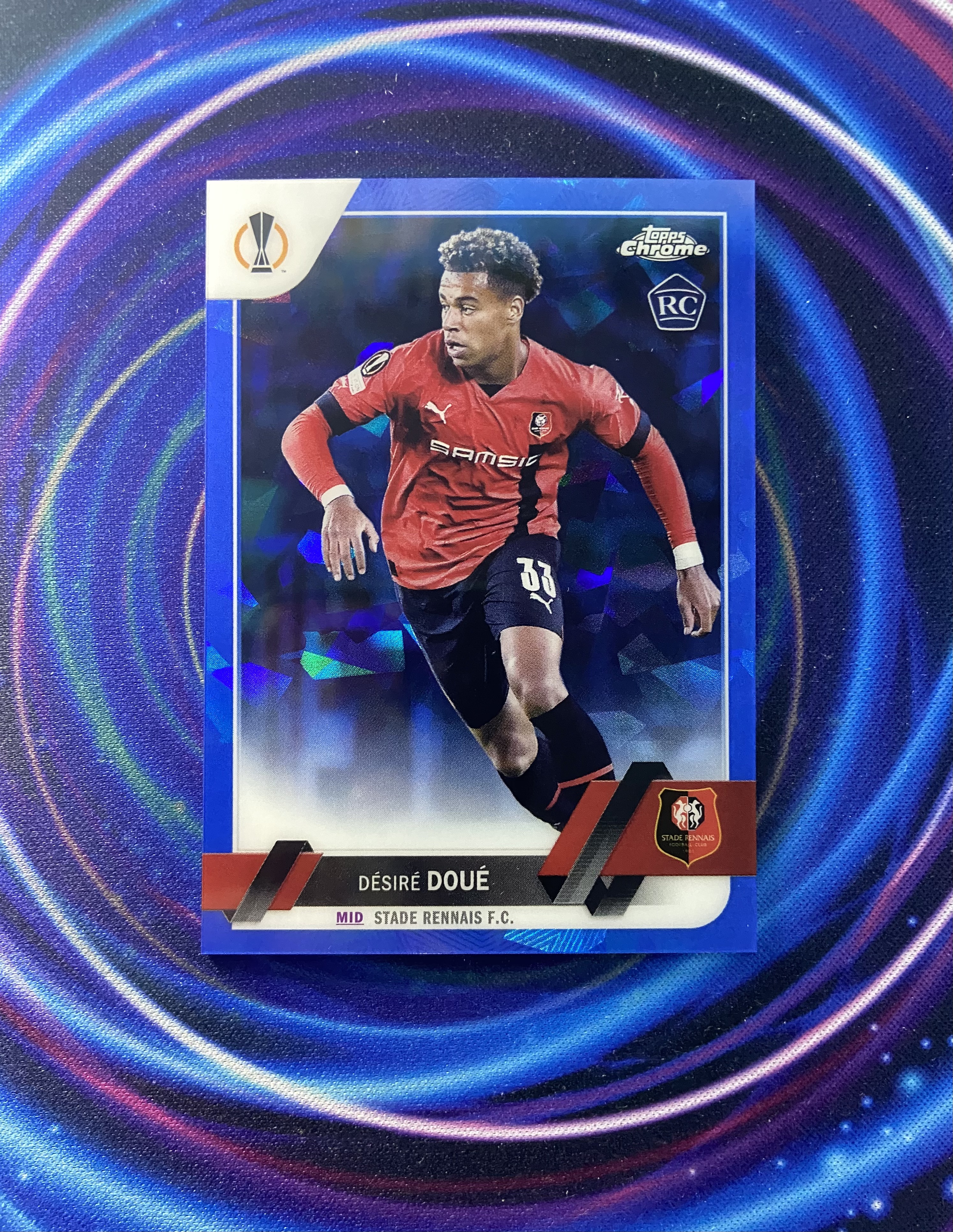2023 Topps Chrome Desire Doue RC 欧冠蓝宝石 雷恩 新秀 德西雷 杜埃 蓝碎冰折 折射 巴黎圣日耳曼 法国 超级新星 实卡精美 收藏必备【万卡收藏-BLZ】