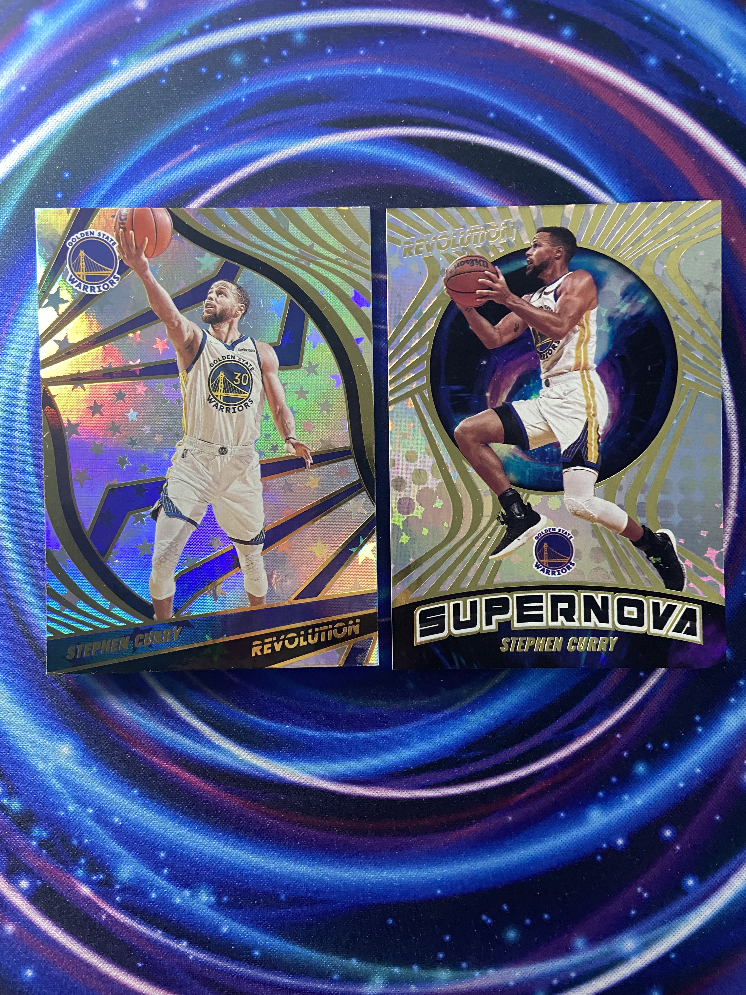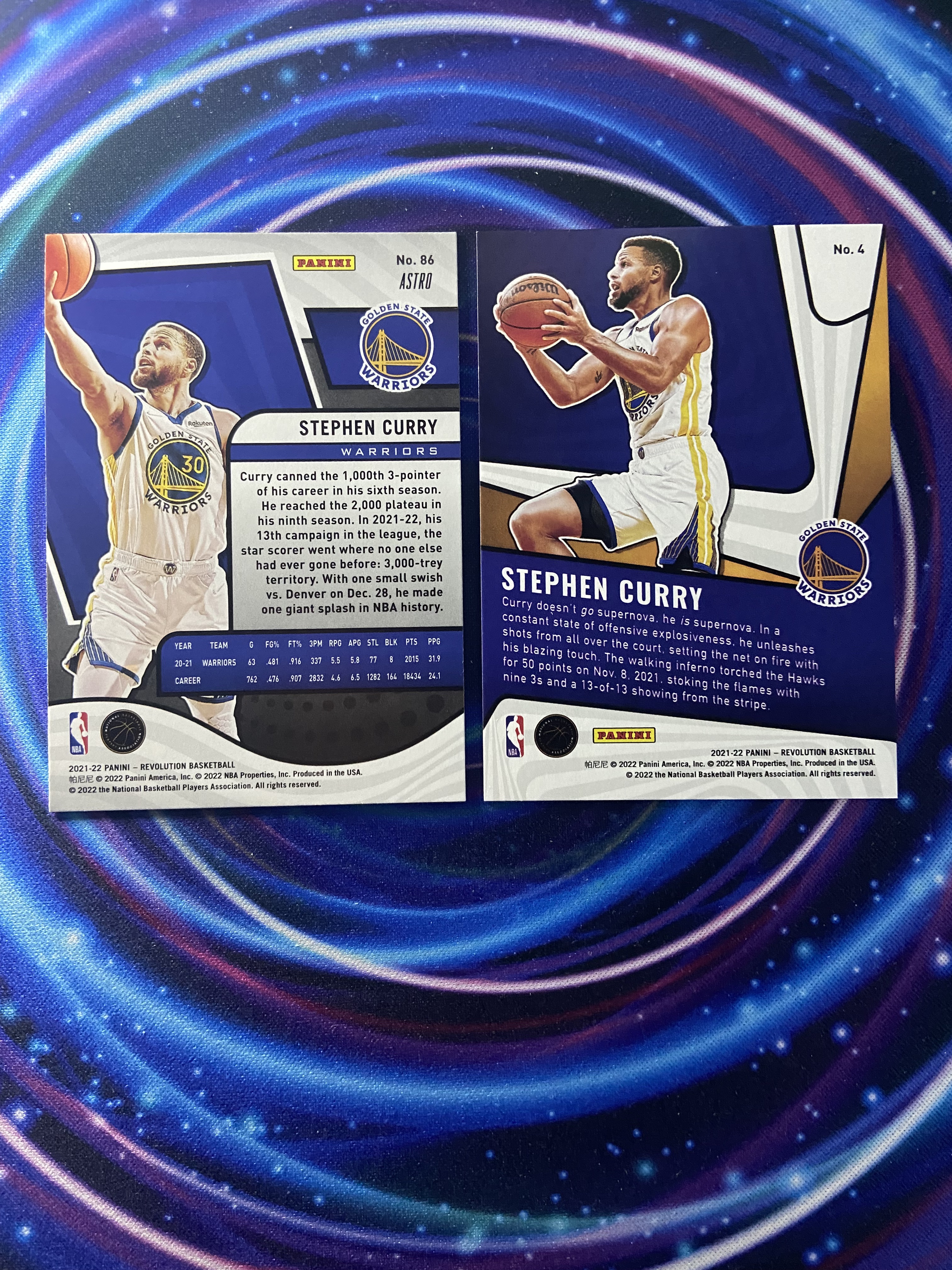 2021-22 Panini Revolution Stephen Curry 革命 金州勇士 斯蒂芬 库里 超新星特卡 星星折 折射 萌神 三分王 两张打包 lot 实卡精美【万卡收藏-BLZ】
