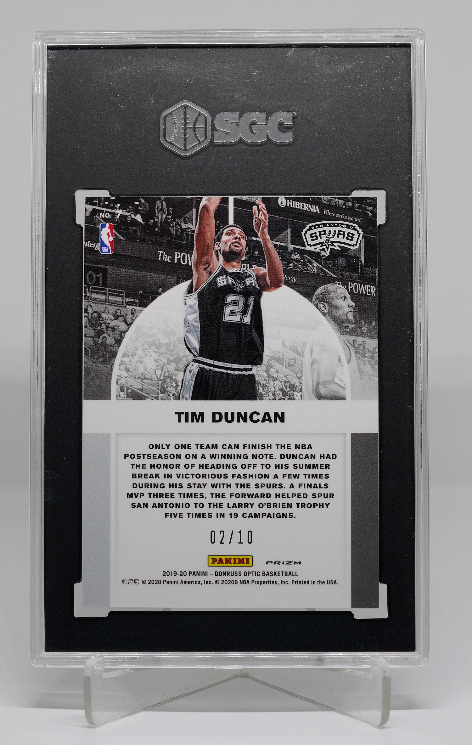 2019-20 Panini Donruss Tim Duncan OPTIC 金折 10编 ( 02 / 10 ) 圣安东尼奥马刺 师佛 蒂姆 邓肯 SGC评级满分10分!