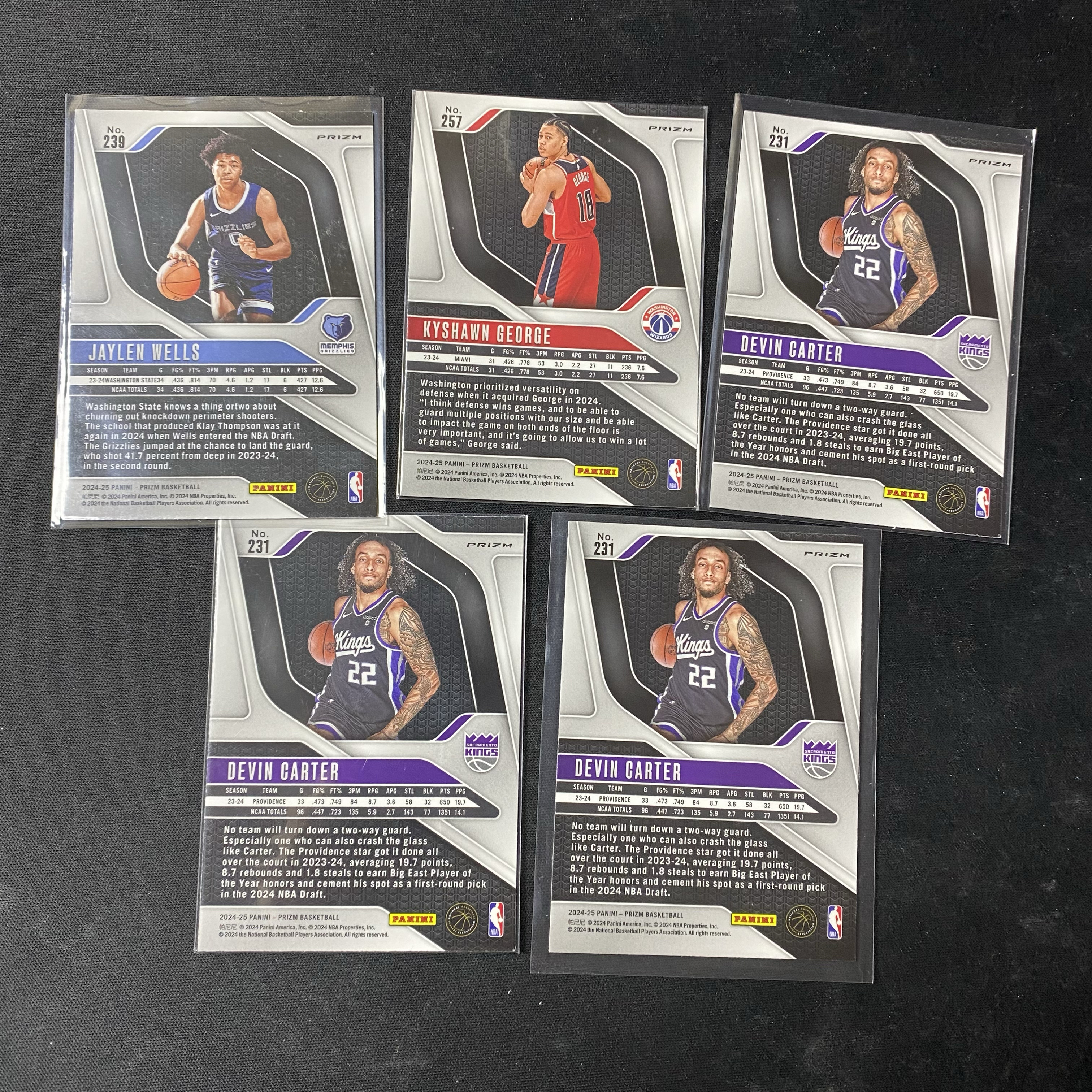 2024-25 Panini Prizm Jaylen Wells RC 【星集卡代卖】dj1119 新秀 杰伦 威尔斯 凯肖恩 乔治 德文 卡特 折射 base 5张打包