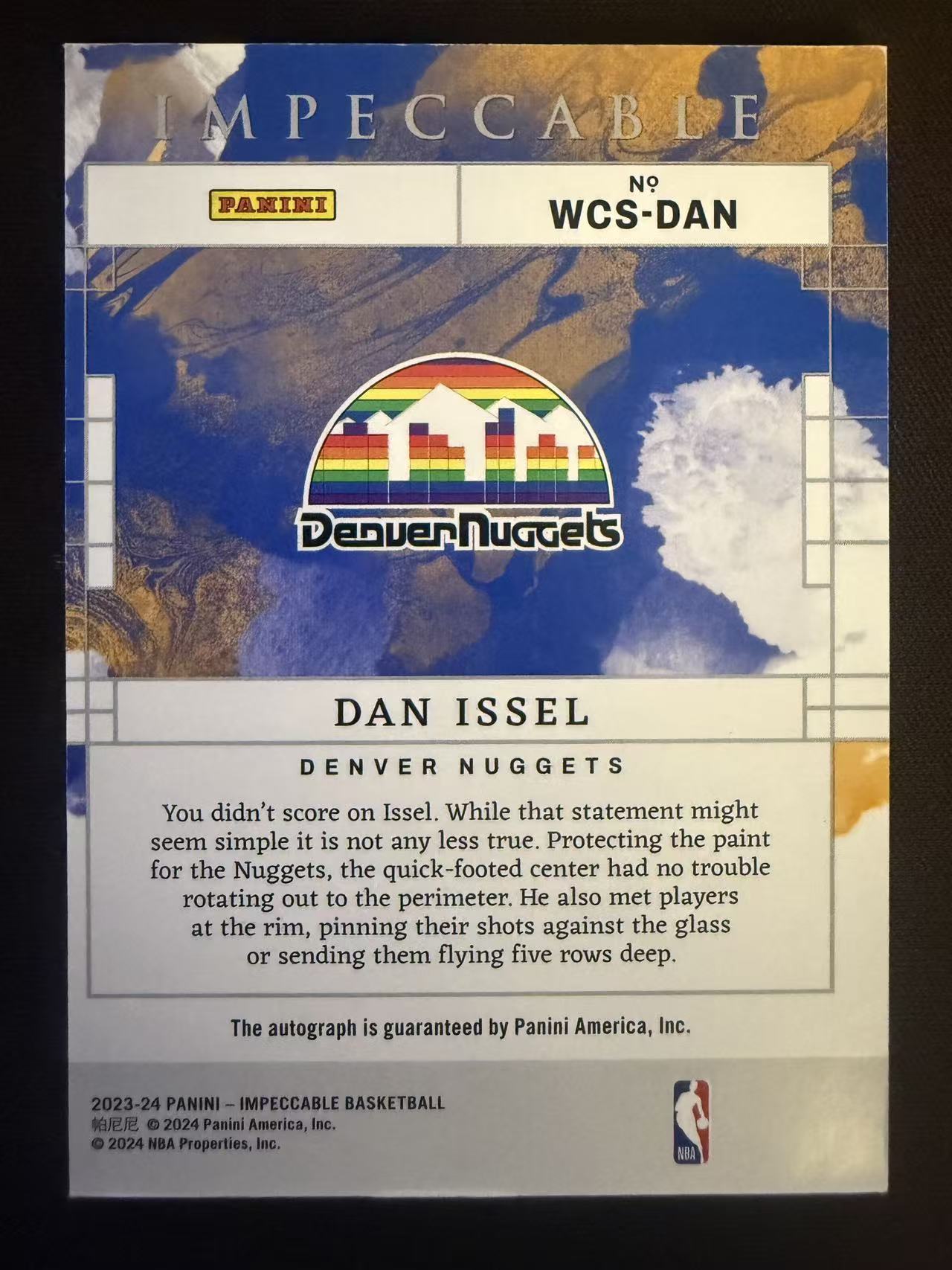 2023-24 Panini Impeccable Dan Issel 【大锦拍卖】掘金 丹 伊赛尔 小真金 31/99编 水彩 INK签 签字 卡签 卡品如图(世界)