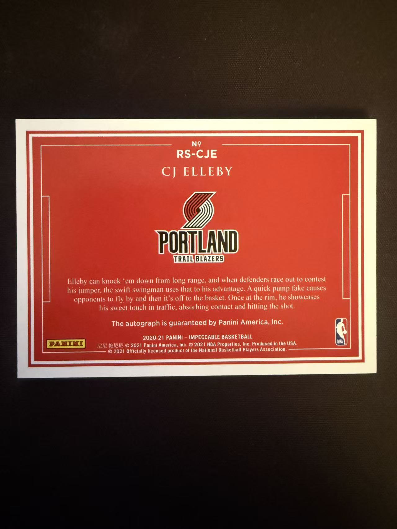 2020-21 Panini Impeccable CJ Elleby RC 【大锦拍卖】开拓者 CJ 艾勒比 小真金 29/99编 新秀 RC 签字 卡签 卡品如图(世界)
