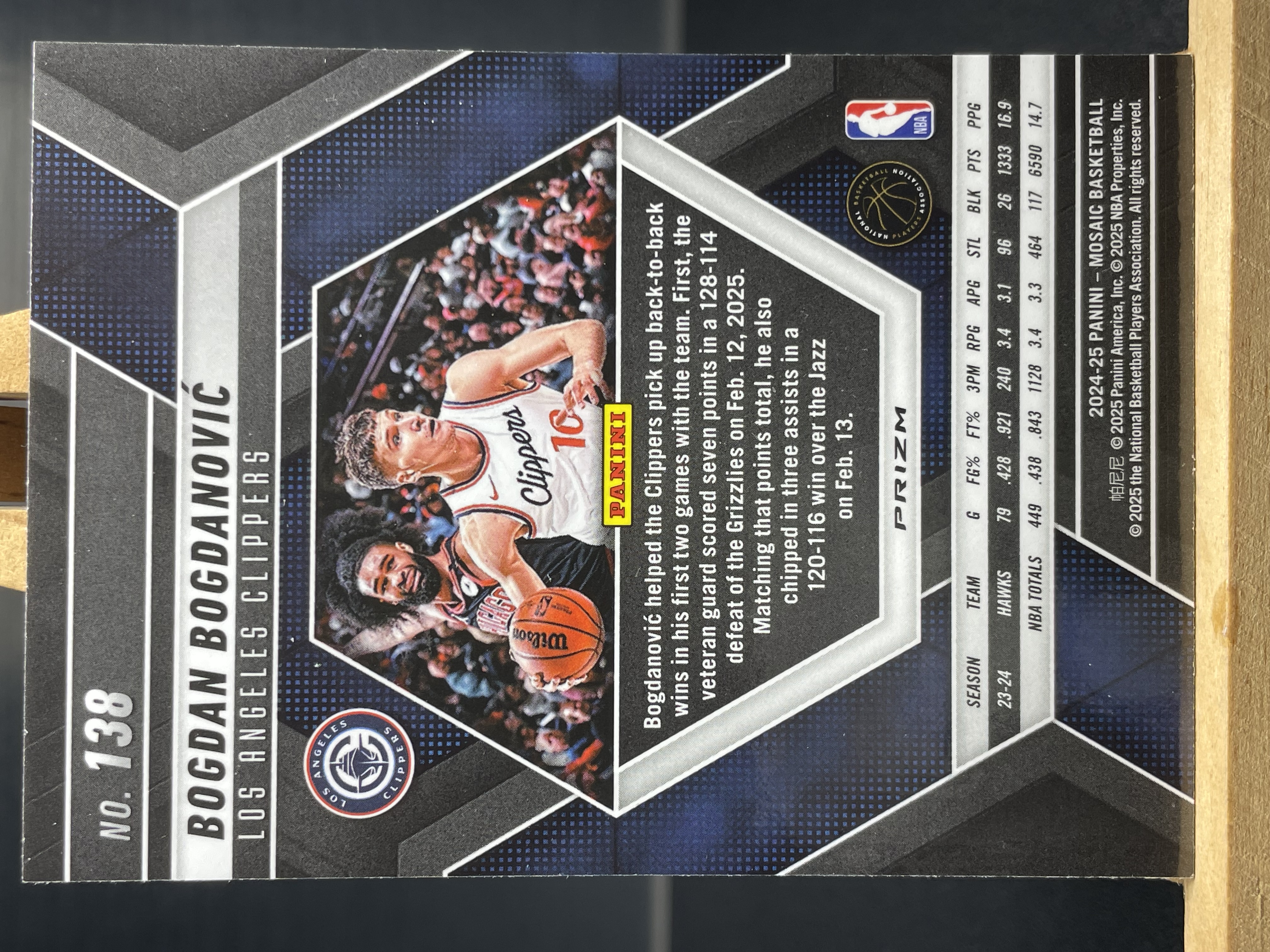 (B8) 2024-25 PANINI 马赛克 折射 博扬 博格达诺维奇 快船 近期大热球星 收藏凑套必备 卡品如图 !!!