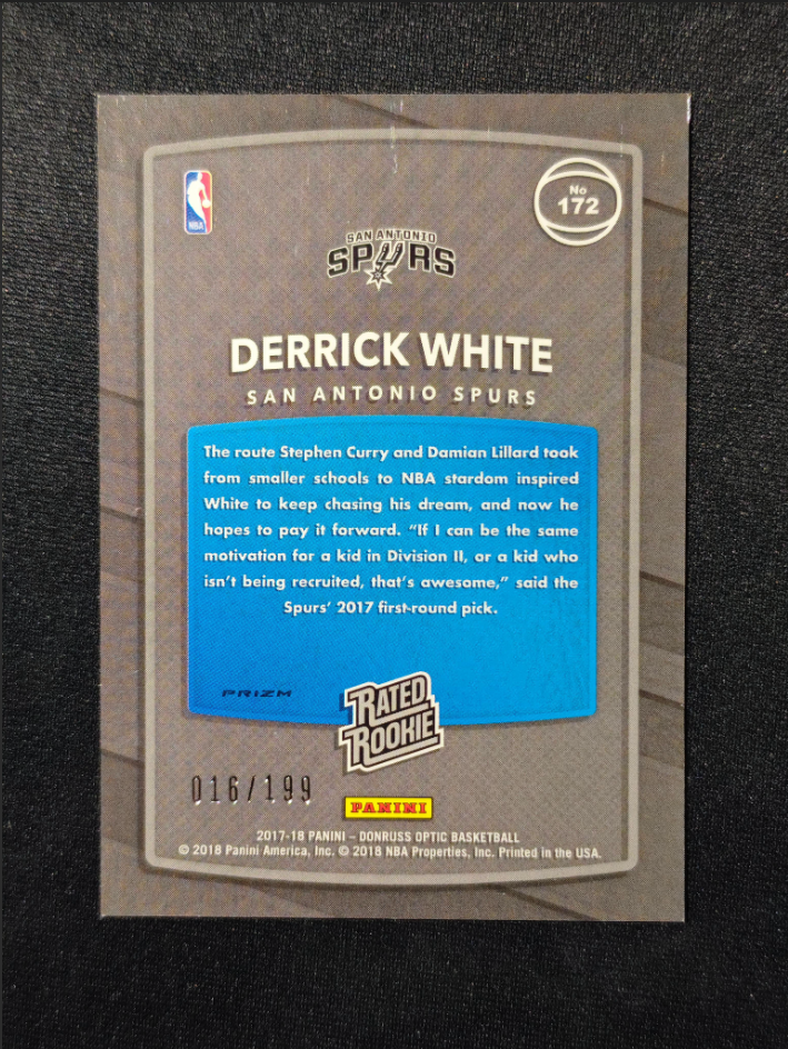 2017-18 Panini Donruss Optic Derrick White RC Spurs 马刺 凯尔特人 正新秀OP 德里克 怀特 白帝 橙折/199编Orange Refractor