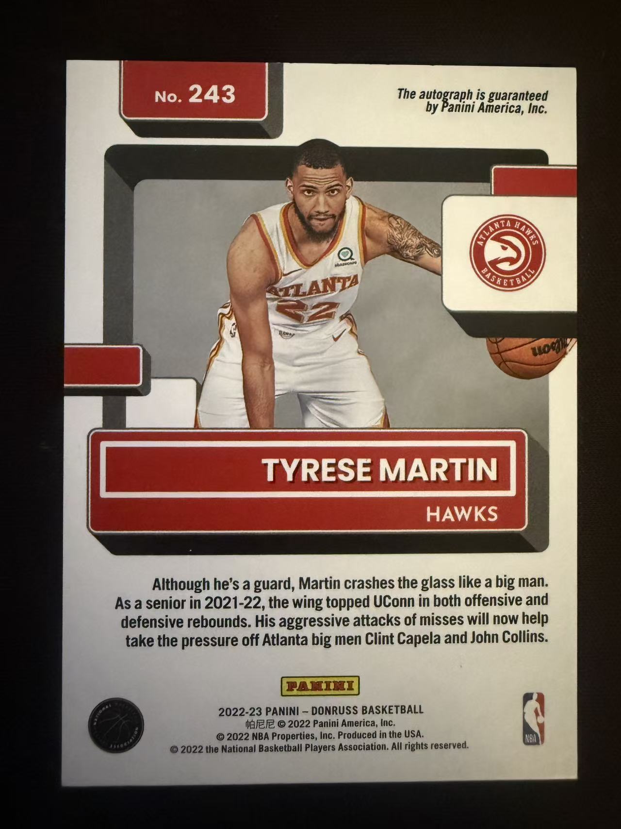 2022-23 Panini Donruss Tyrese Martin 【大锦拍卖】老鹰 泰瑞斯 马丁 杜蕾斯 银迷宫折 折射 签字 贴签 卡品如图(世界)