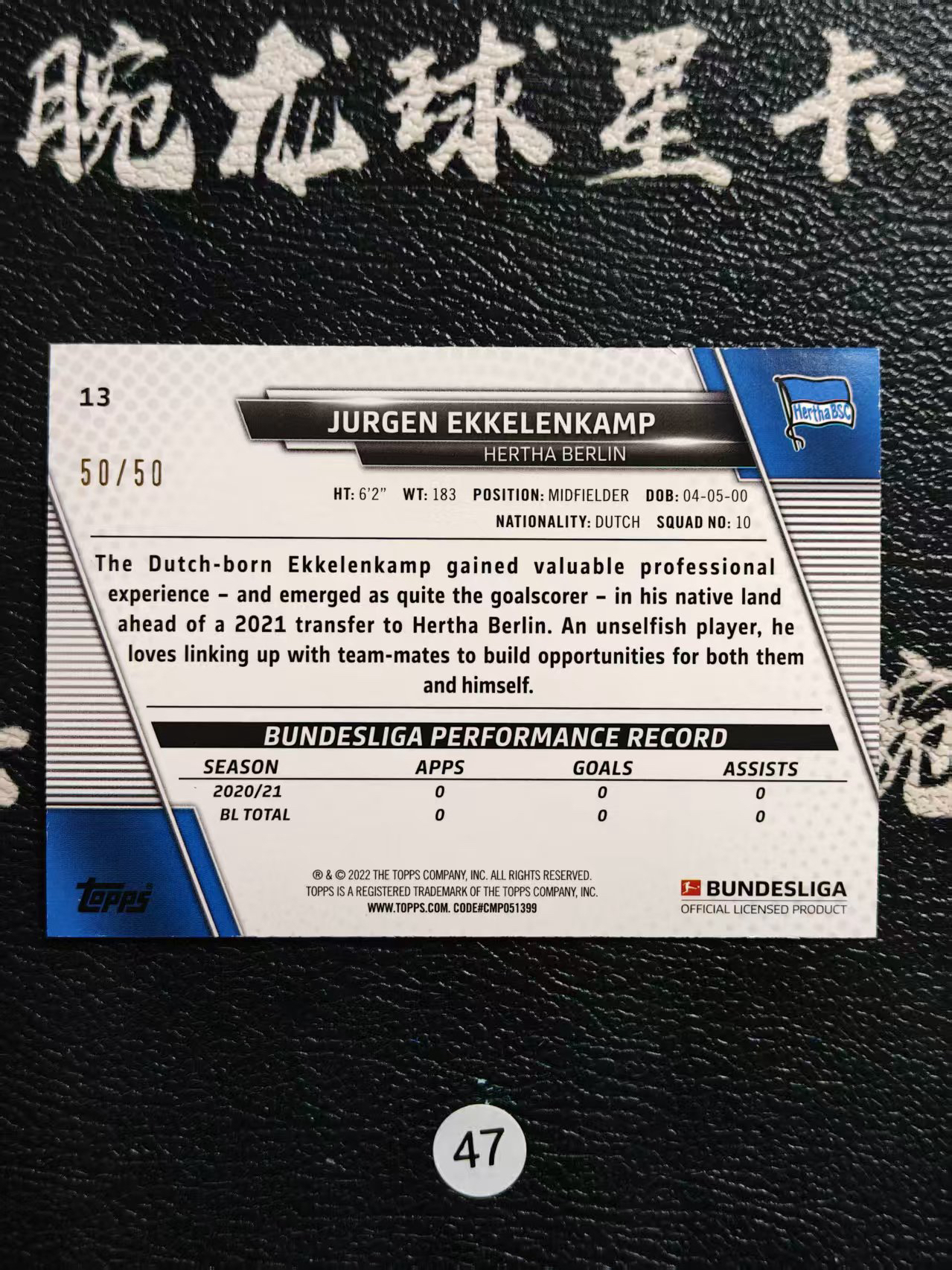 2022 【腕龙拍卖 接代卖】 腕龙E总AP2 Topps Ucc 德甲 埃克伦坎普 柏林赫塔 金折 50/50编 尾编 JURGEN EKKELENKAMP 卡品如图 收藏必备
