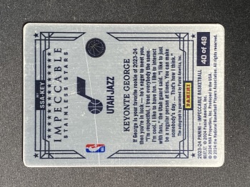 【关于卡品】:①出价即认同品相详情及拍卖规则,概不退换;②签字墨迹及卡片品相均如图,请看清楚细节图再拍,图片很清楚,需要细节图请提前咨询站内信或VX;③折射系列经常会有一道横线印刷线是出品印刷问题,不属于卡品残次范畴。国宝、IMM、NOIR等厚卡有轻微白边白角属于正常现象!镜面系列等卡面轻印划痕、印刷自带痕迹或覆膜不平起泡等卡片自身问题均为通行品。老卡有白边白角属于正常卡品。评级卡砖上的划痕和破损以及评级砖内的卡有卡品问题一律不属于品相问题。PZ、OP等各种折射系列表面的轻微划痕为正常卡品。关于以上卡品问题请确认无误再出价,介意者勿拍,要评级追求金标和10分者请直接购买评级卡。④快递过程中如出现包装破损、暴力变形、遗失等问题,请自行联系顺丰客服处理理赔,提供购买订单记录和物流记录给顺丰即可,如有高价卡有保价需求,请主动联系我们!⑤所有多卡打包lots标均不保卡品,品控和艺术家勿扰,感谢理解!【任何疑问请添加咨询VX:cglgzh01】