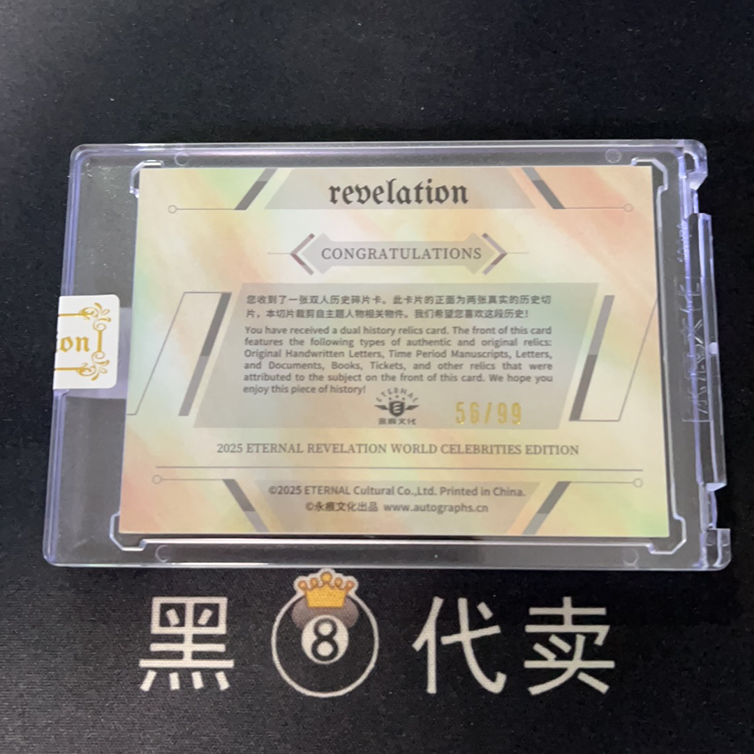 5【黑8代卖】2025 ETERNAL REVELATION 永痕文化 启示录系列 莎士比亚 爱因斯坦 双人 相关物件 历史切片 99编 折射 名人收藏卡 原封砖【ress】