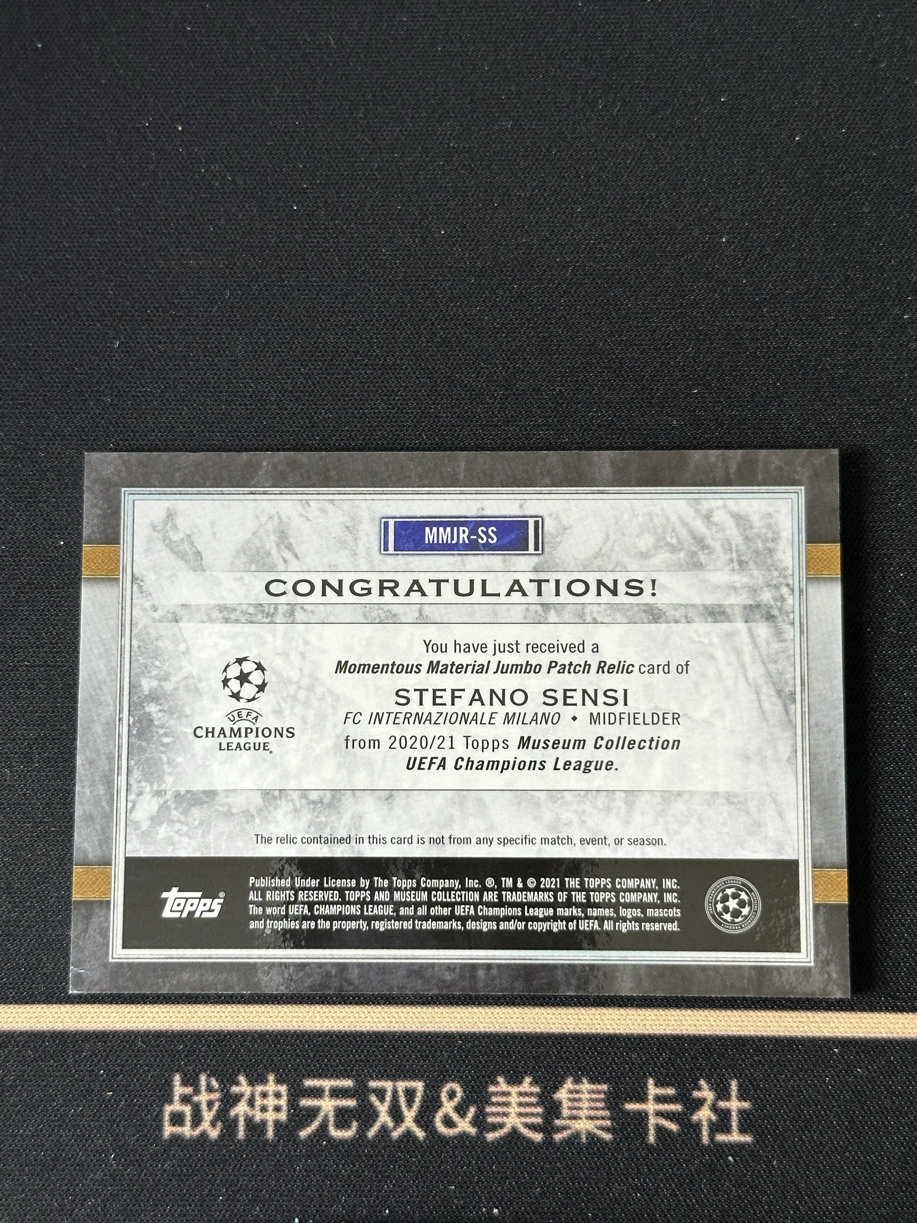 2021 Topps 博物馆 Stefano Sensi 森西 球衣 物料 国际米兰 75编 欧冠 瑕疵 战神无双 (#koja)