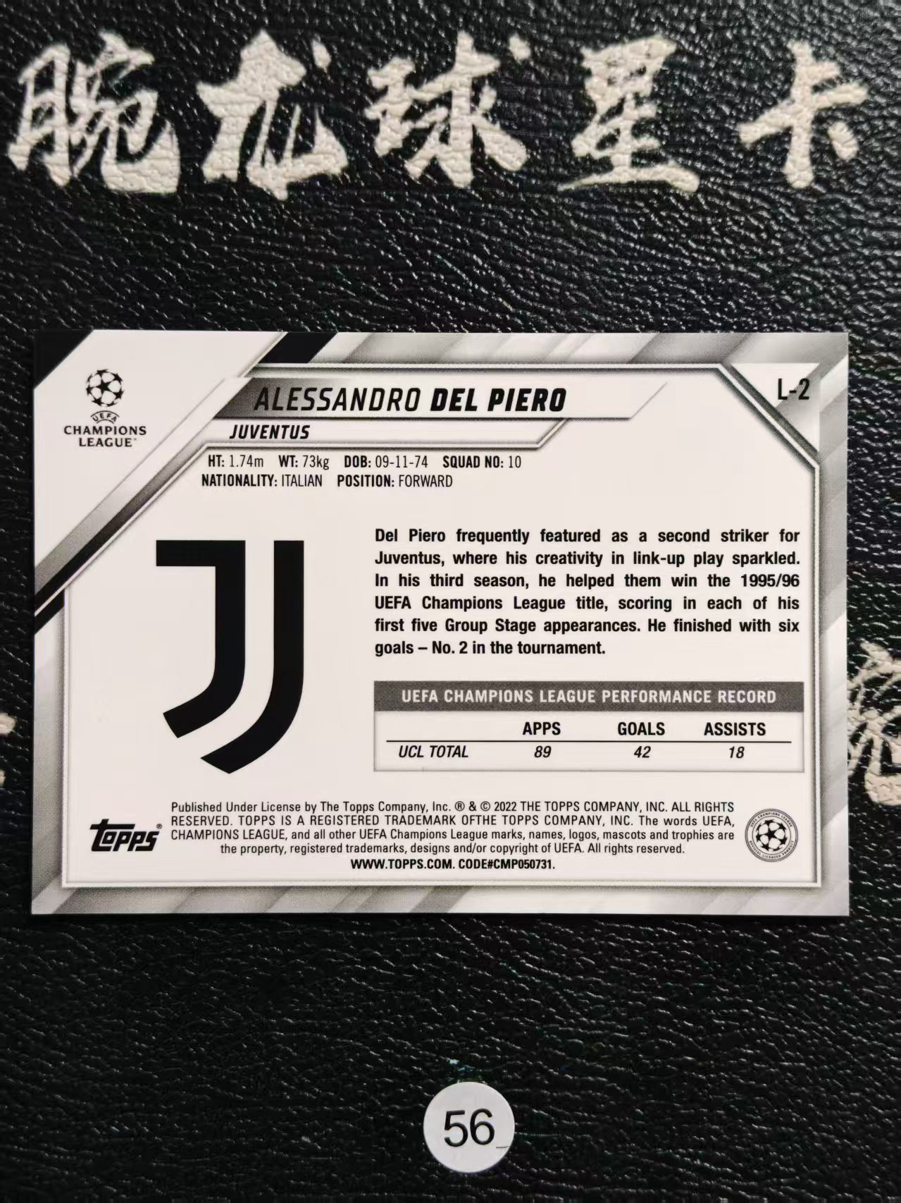 2022 【腕龙拍卖 接代卖】 腕龙夏总AP4 Topps Chrome 欧冠 蓝宝石 德尔皮耶罗 尤文图斯 传奇名宿 ALESSANDRO DEL PIERO 卡品如图