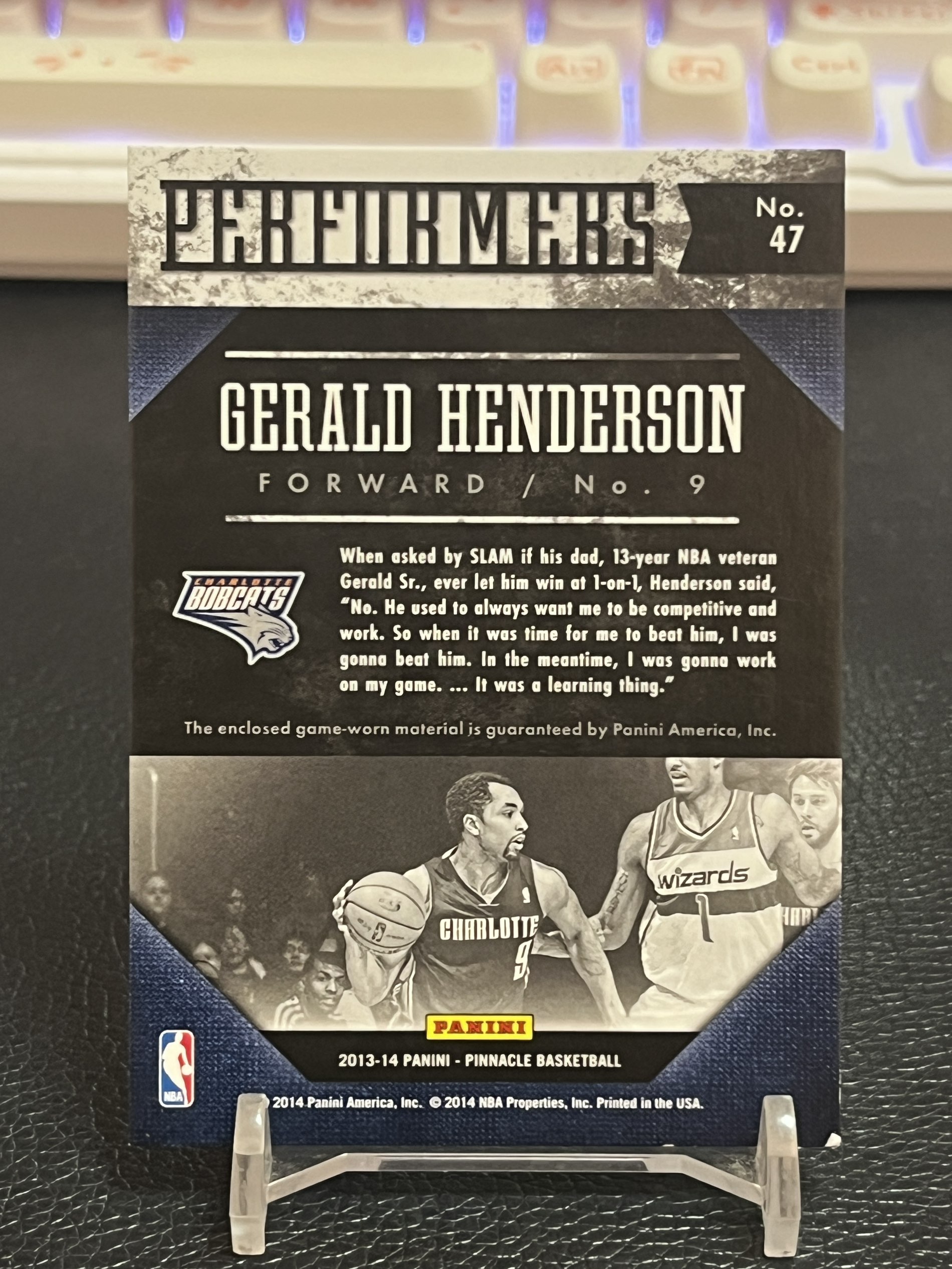 【浩行拍卖 截标预付82%】2013-14 panini Pinnacle gerald henderson 巅峰 山猫 杰拉德 亨德森 球衣 物料 专收必备 瑕疵看图「城府320」1118F01祺