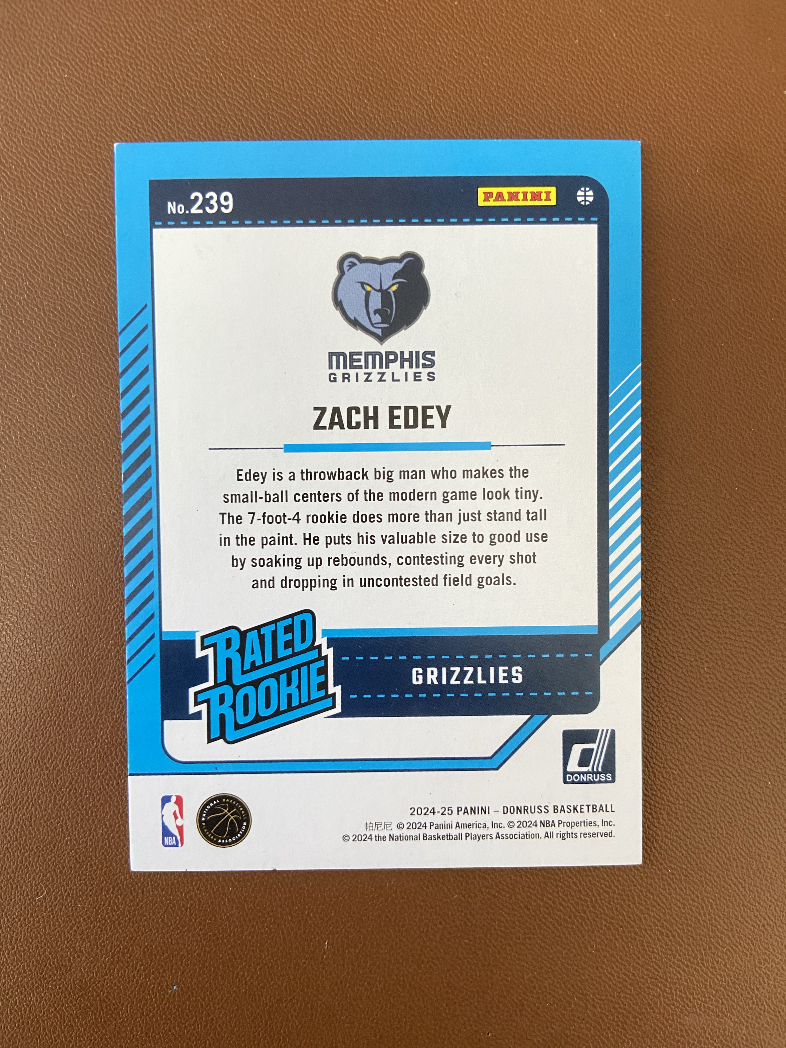 2024-25 Panini Donruss Zach Edey RC 扎克 伊迪 埃迪 周志豪 灰熊新秀 杜蕾斯 025/149编 绿折 折射 收藏必备