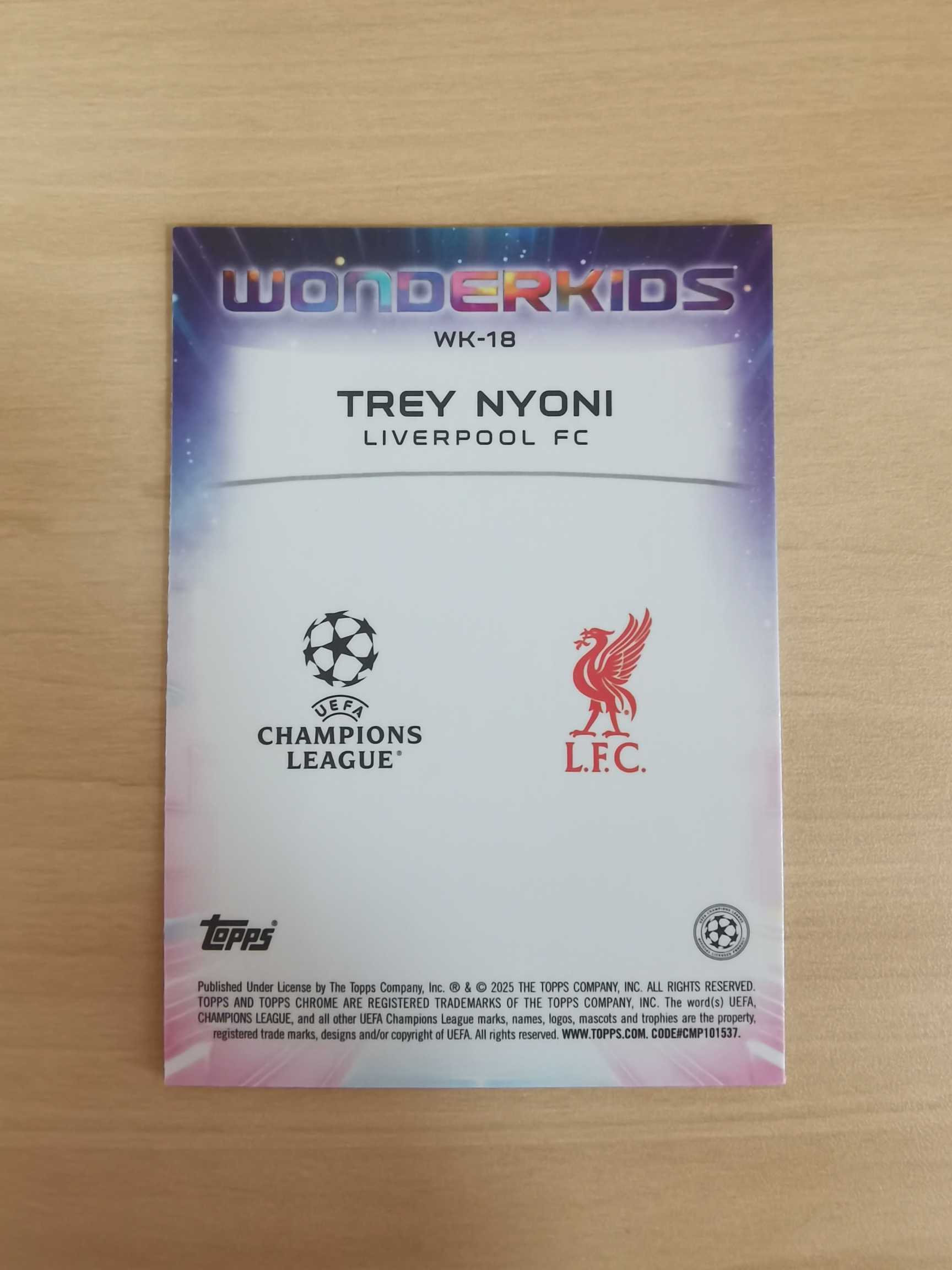 2025 Topps Chrome 欧冠 Trey Nyoni tc 利物浦 尼奥尼 新秀 rc 神奇小妖特卡 银折 折射