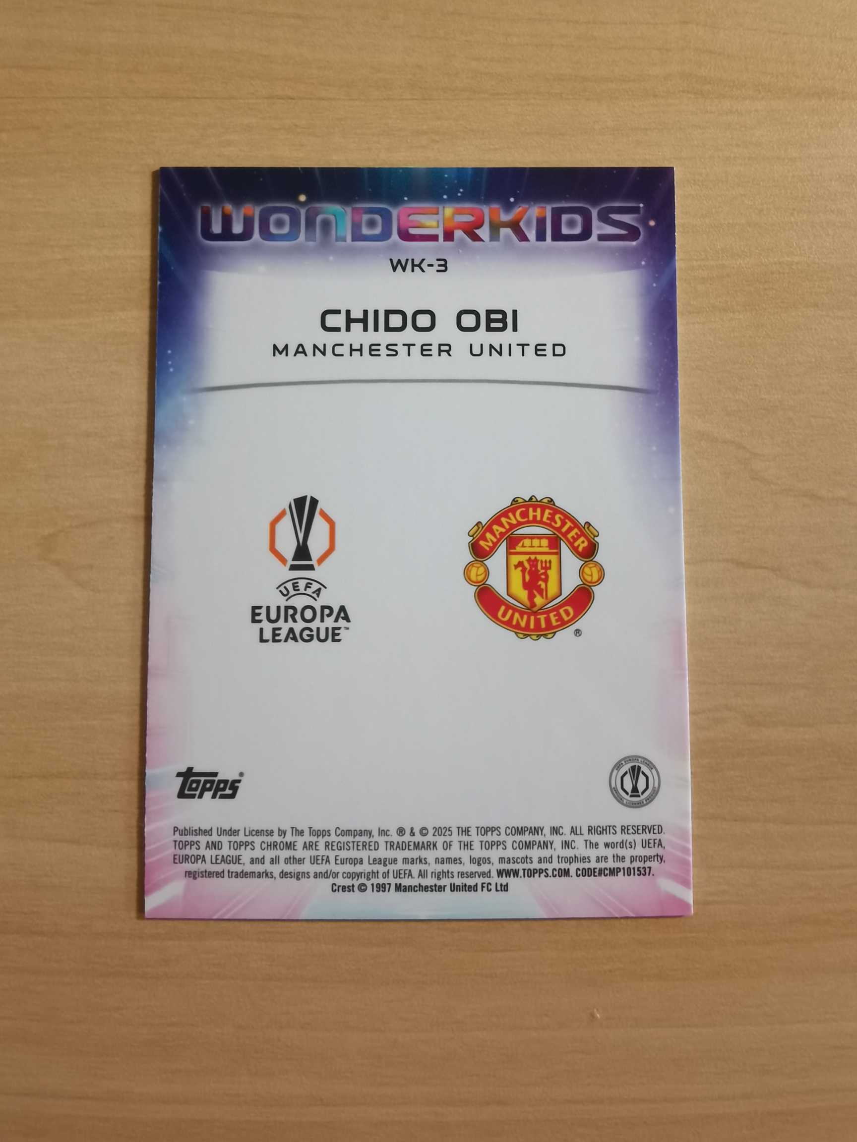 2024 Topps Chrome 欧战 Chido Obi tc 曼联 曼彻斯特联 奇多 奥比 新秀 rc 神奇小妖特卡 银折 折射