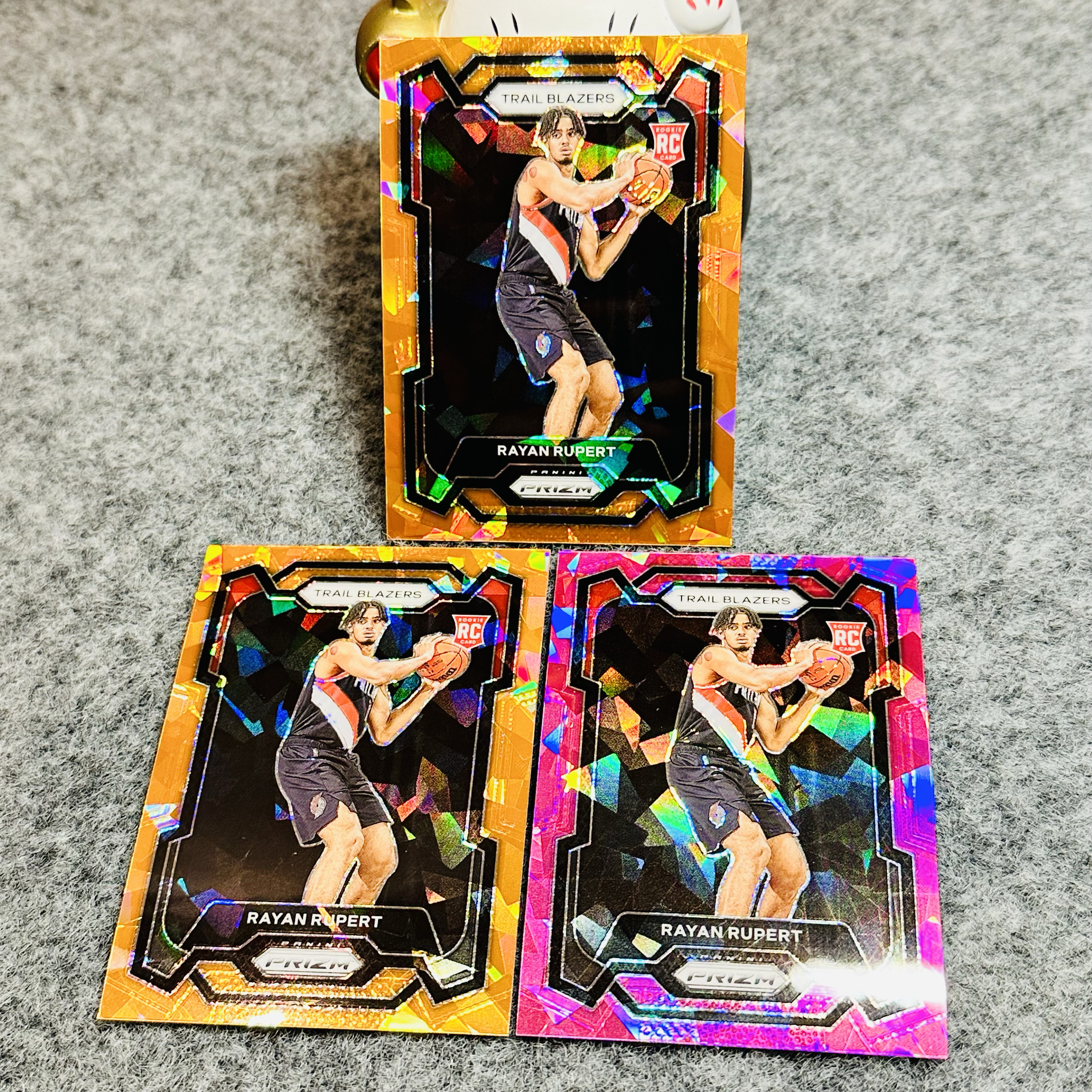 2023-24 Panini Prizm Rayan Rupert RC 吕佩尔 开拓者新秀 粉碎冰 橙碎冰 3张打包lot 折射彩虹套 凑套收藏投资 文班亚马同届 杨瀚森队友库里詹姆斯卡品通行如图