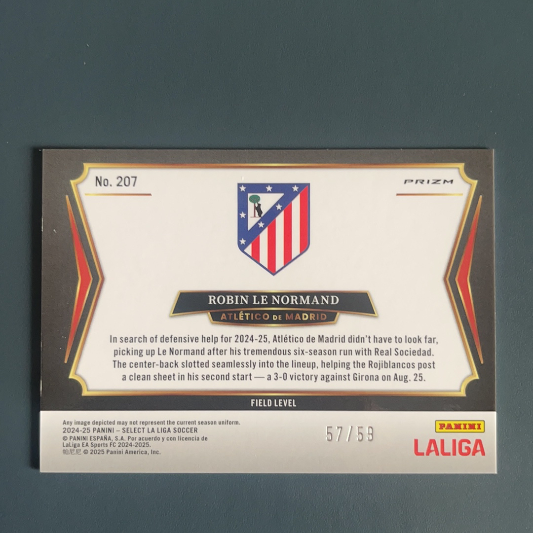 2024-25 Panini Select Robin Le Normand 西甲 Select 马德里竞技 法国 勒诺尔芒 诺曼德 铜棋盘折 59编 卡品如图 值得收藏