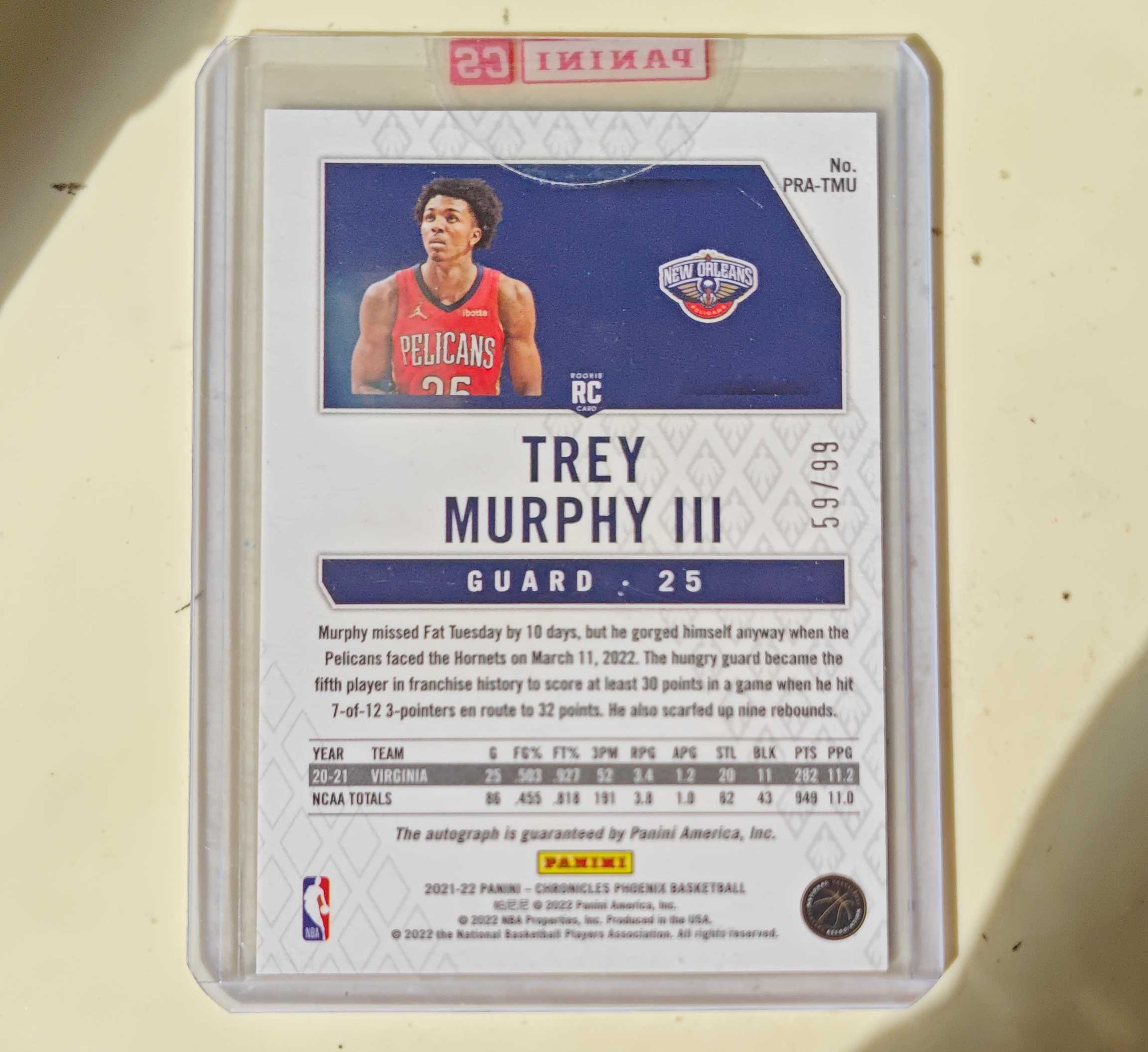 2021-22 Panini Chronicles Trey Murphy III RC 特雷 墨菲三世 凤凰 新秀 编年史 59/99编 鹈鹕 潜力锋线 帕尼尼原封夹 专收必备