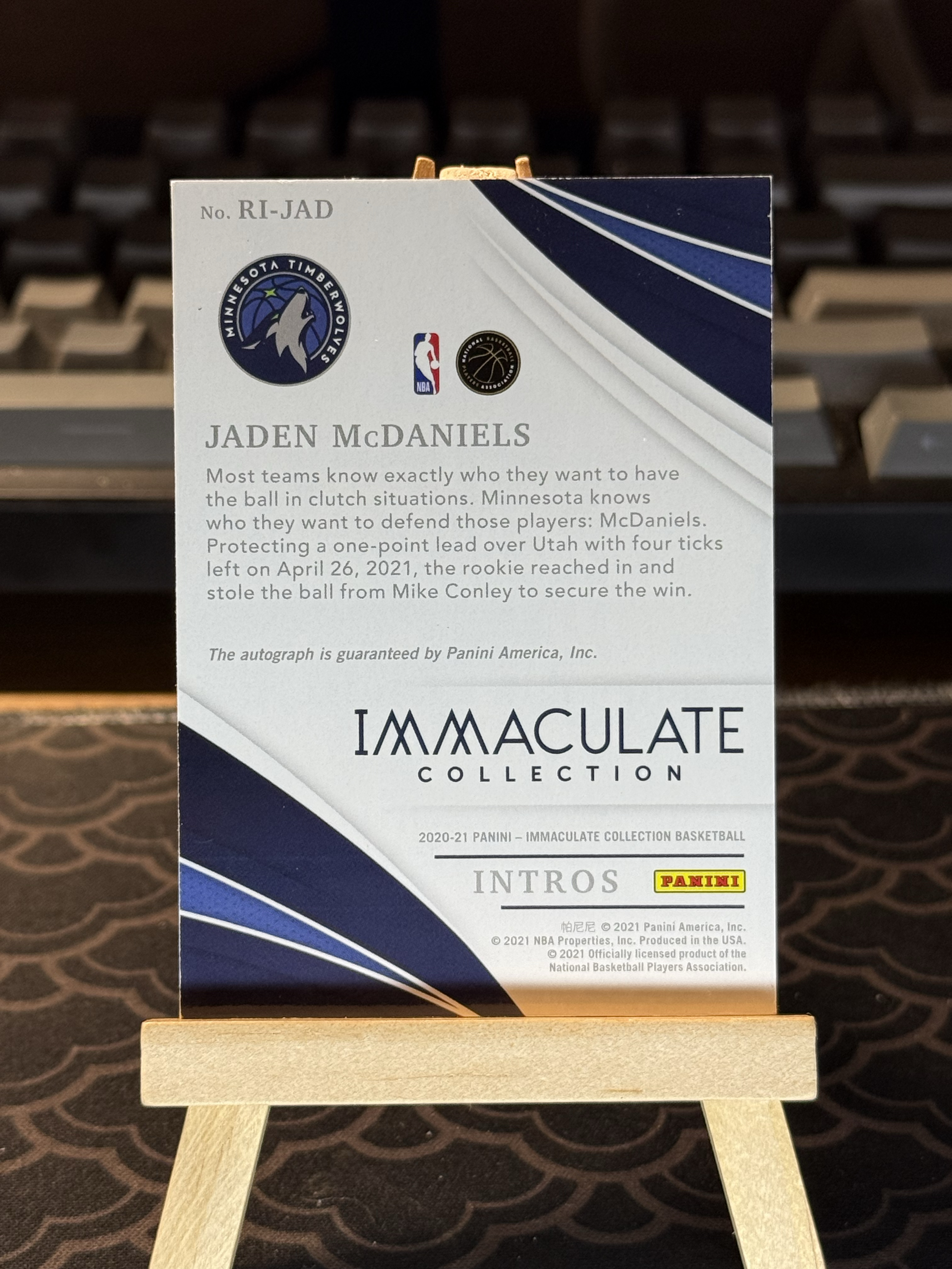 2021 Panini Immaculate Jaden McDaniels RC 杰登 麦克丹尼尔斯 麦丹 imm 爱咪咪 签字 卡签 新秀介绍签 99编 介绍签 森林狼 主力 墨迹完美