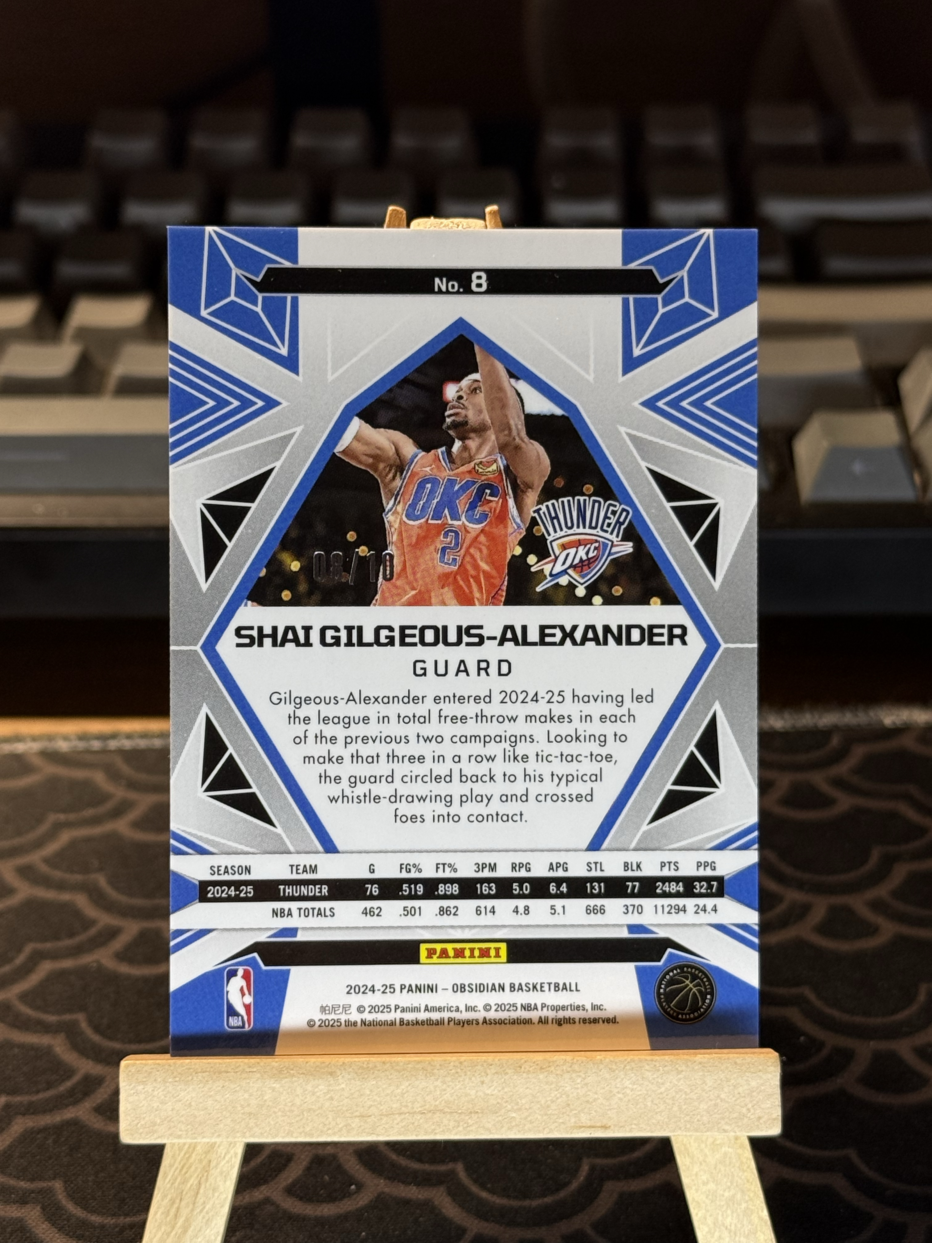 2024-25 Panini Obsidian Shai Gilgeous-Alexander 雷霆 亚历山大 08/10编 10编 超低编 金mojo折 SGA 黑曜石 减法同背 联盟门面