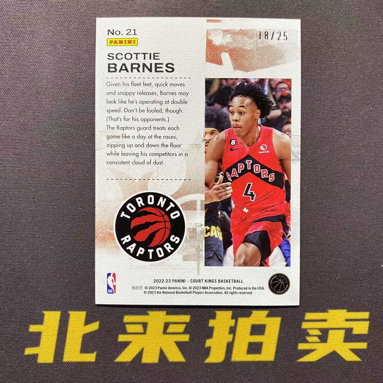 【北来拍卖】2022-23 PANINI Court Kings Scottie Barnes 油画 斯科蒂 巴恩斯 猛龙 双重曝光 特卡 25编 绿平行 瑕疵如图 W1【成成】187#
