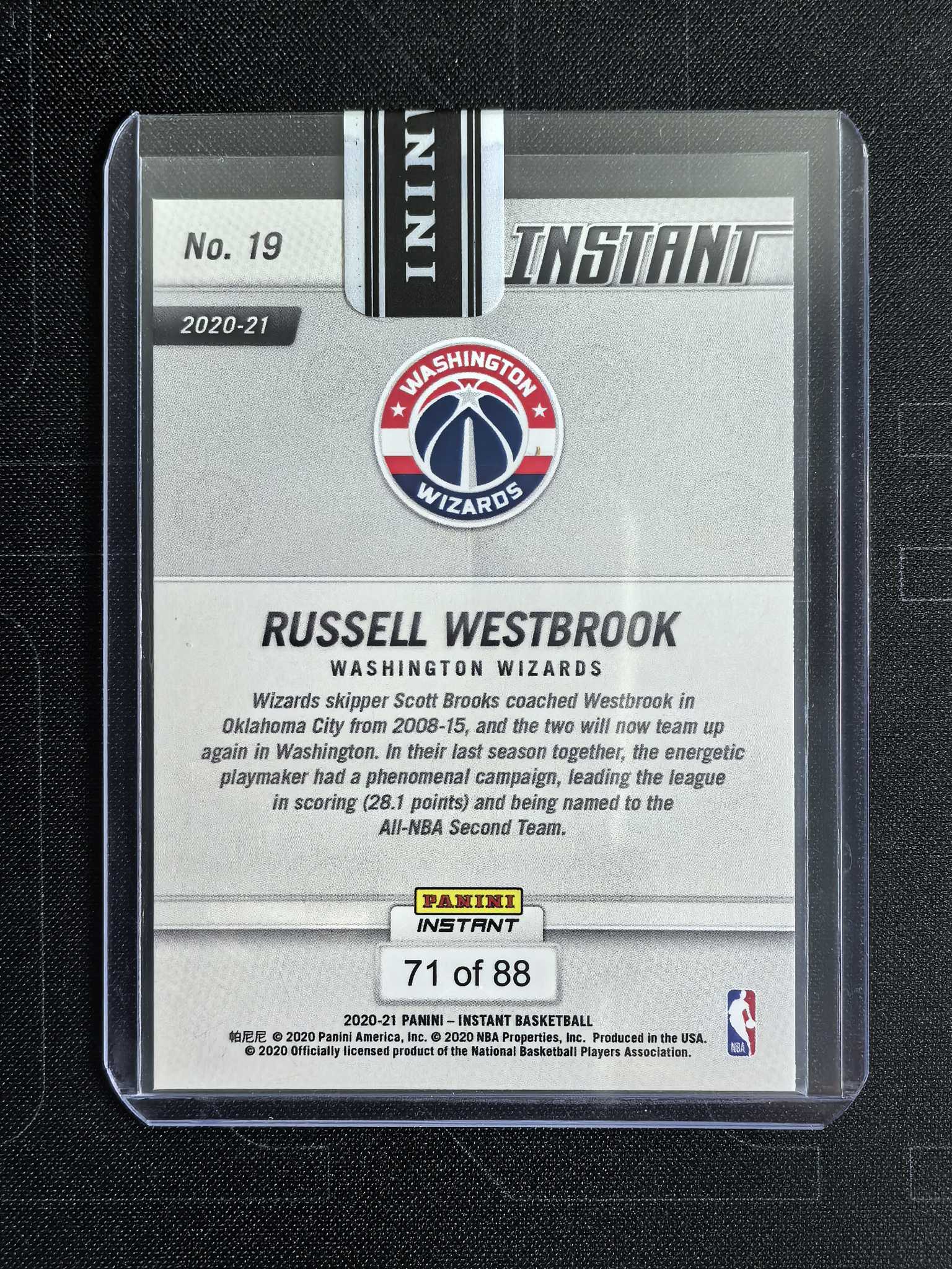 2020-21 Panini Instant Russell Westbrook 奇才 拉塞尔 维斯布鲁克 威少 瞬时 特卡 88编 带编 原封卡夹 凑套必备 卡品如图
