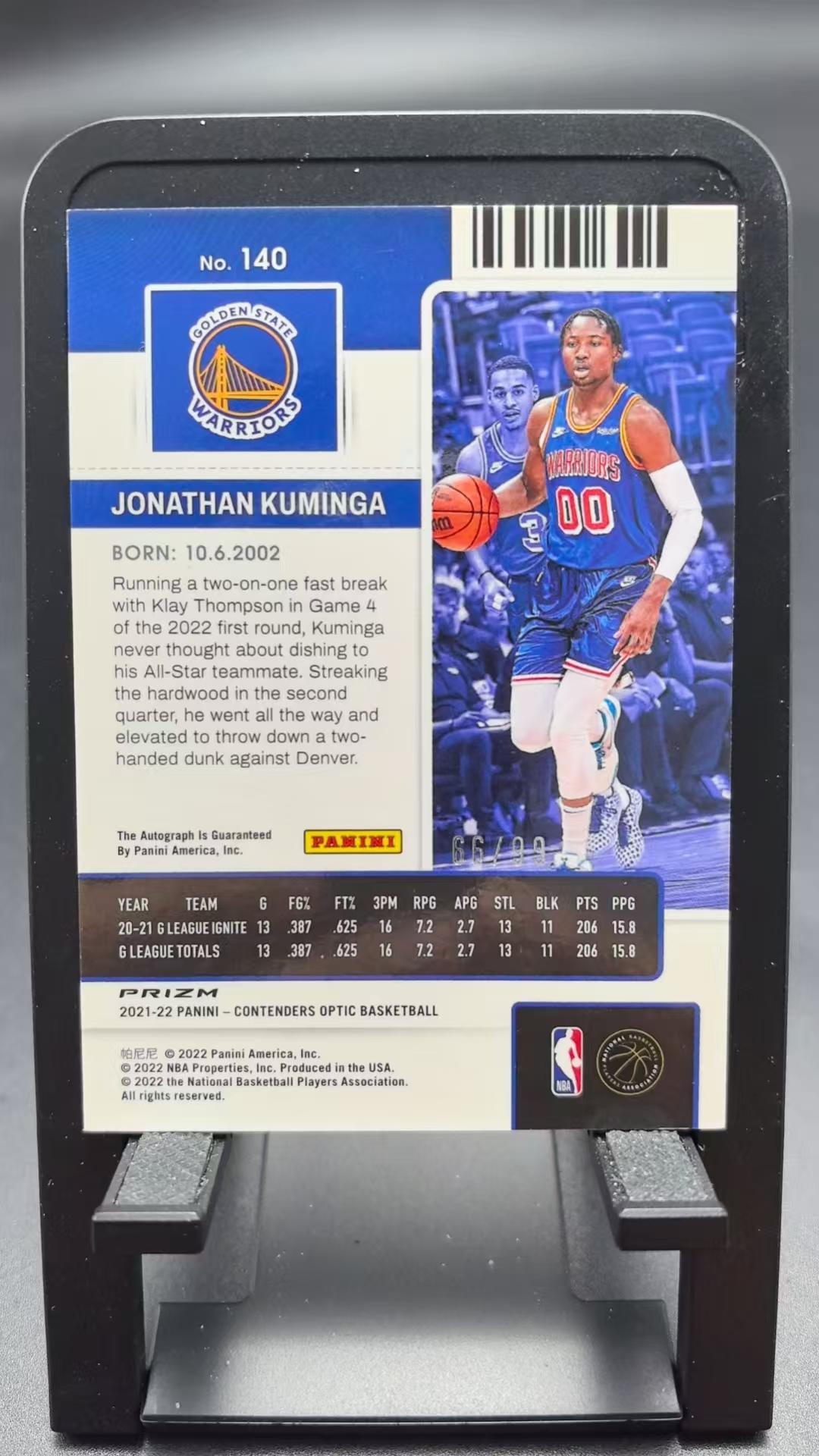 2021-22 Panini Contenders Optic Jonathan Kuminga RC 【EC】球票 OP 勇士 乔纳森 库明加 66/99编 新秀 签字 卡签 折射 红折 环球21