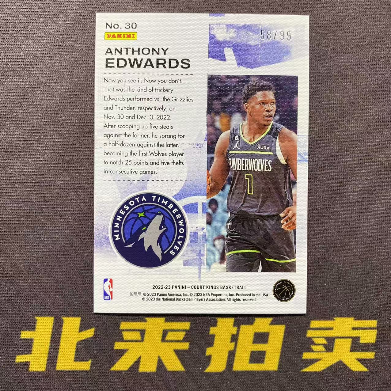 【北来拍卖】2022-23 PANINI Court Kings Anthony Edwards 油画 安东尼 爱德华兹 华子 森林狼 双重曝光 特卡 99编 蓝平行 瑕疵如图 W1【成成】192#