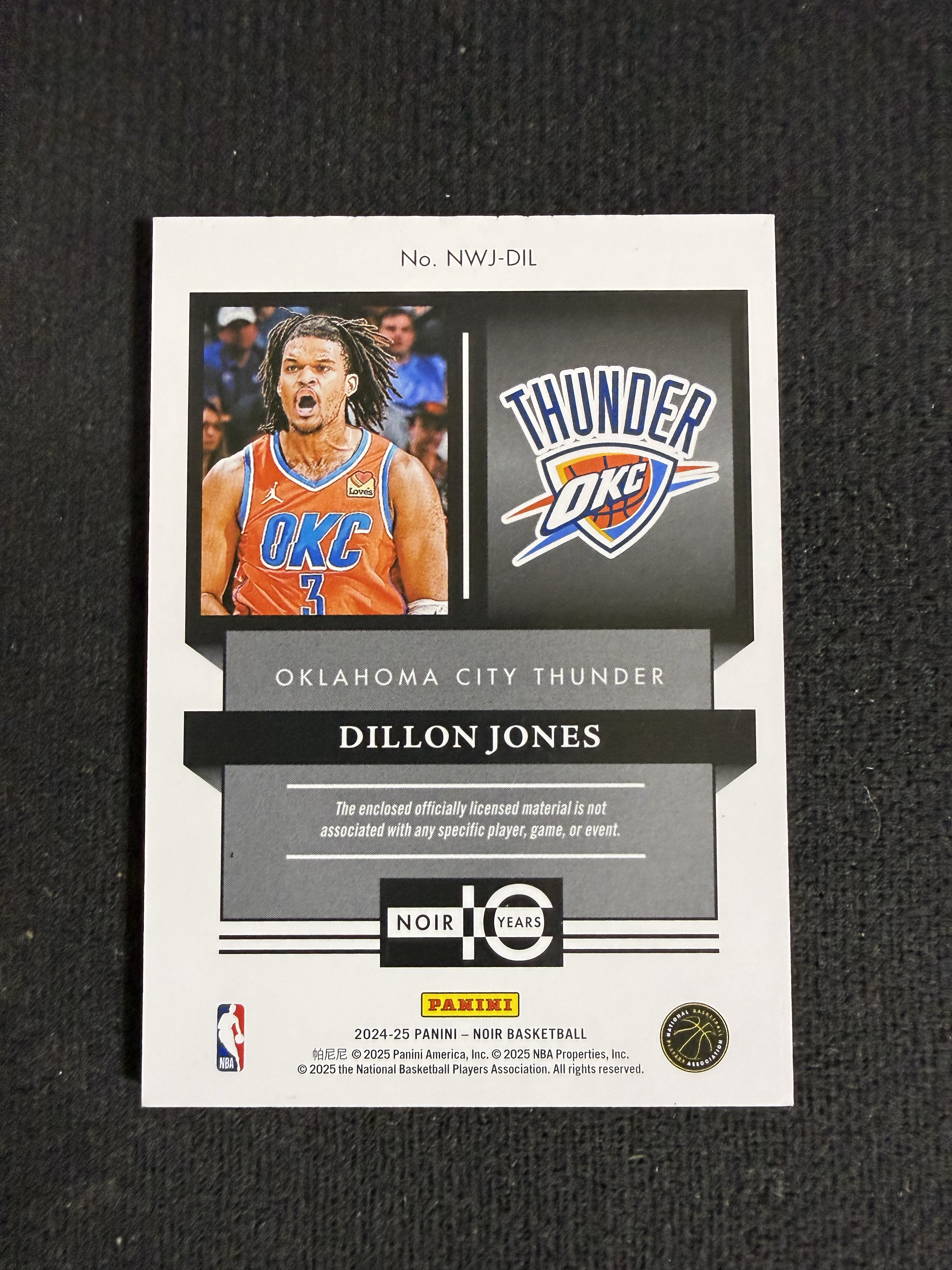 2024-25 Panini Noir Dillon Jones RC 雷霆 诺尔 狄龙 琼斯 新秀 暴力 patch 三色暴力切割 球衣 物料 99编 高端系列 (宇哥)