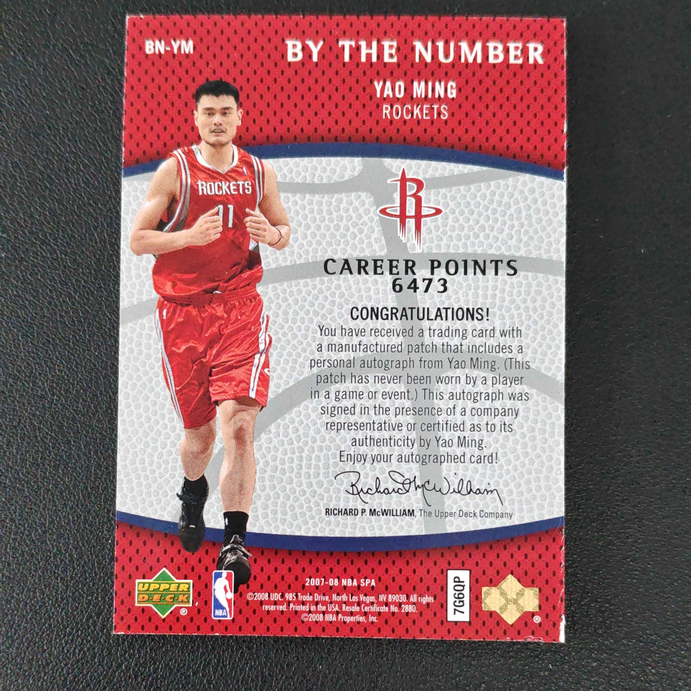 2007-08 Panini UD Black Yao Ming UD SPA 火箭 姚明 75编 Patch 签字 72/75 记录职业生涯6473分 国人之光 收藏佳品 白边角轻微划痕