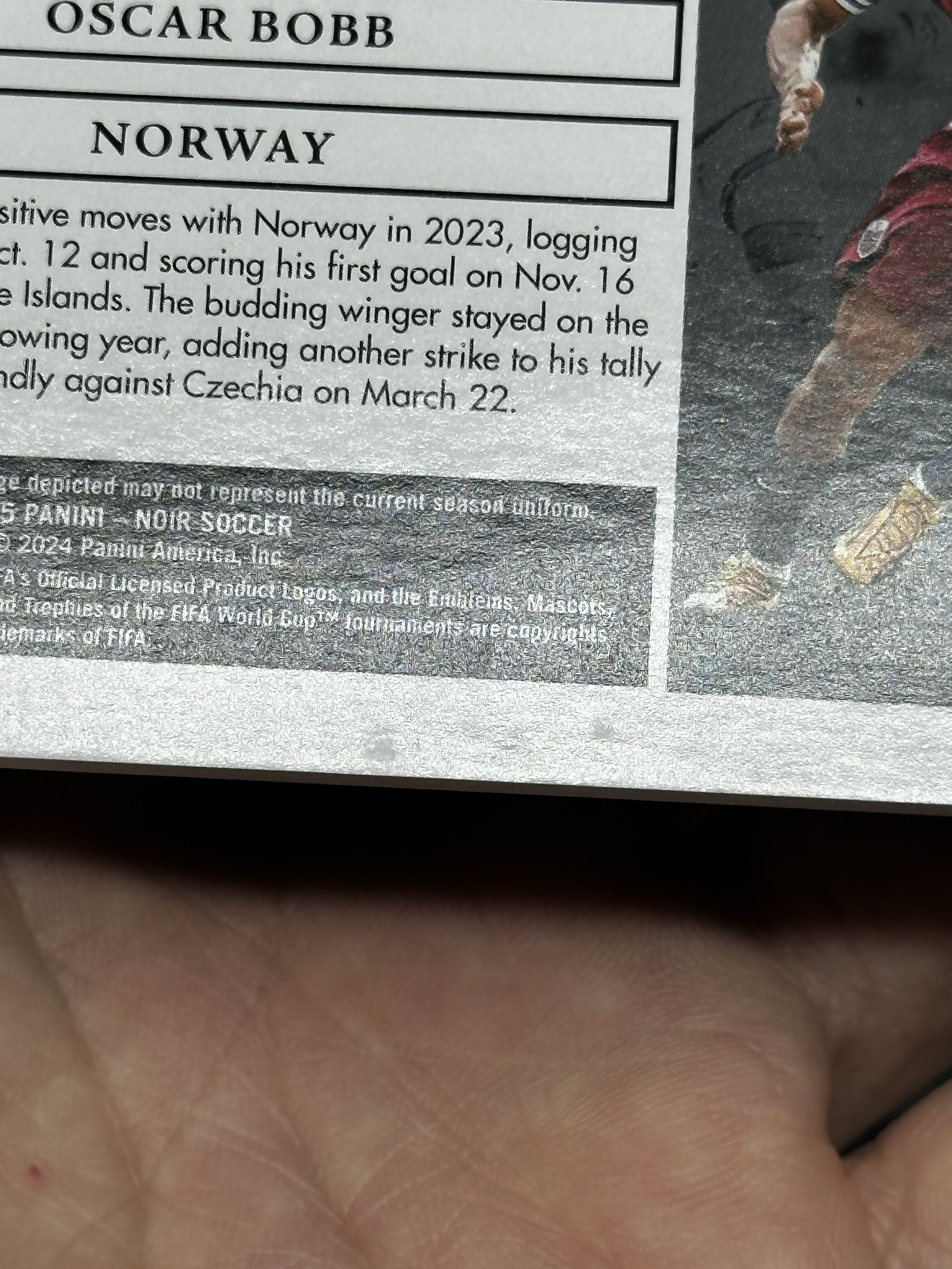 2024-25 Panini Noir Oscar Bobb 【麦考拍卖】诺尔FIFA 限量厚卡 正Base 挪威 曼彻斯特城超新星 奥斯卡鲍伯 ☄️已进世界杯未来可期+45/49编☄️微瑕图