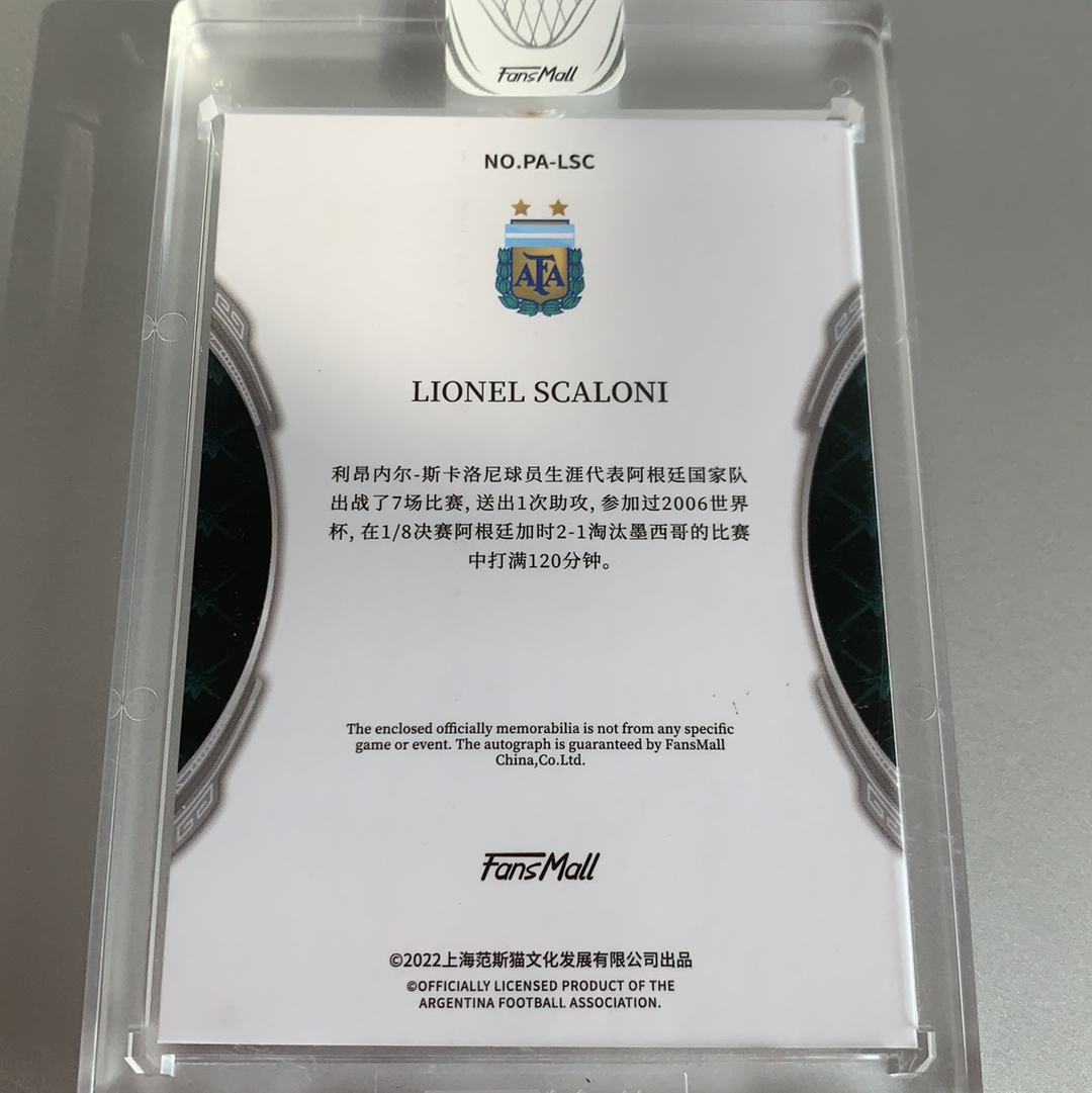 2022 FansMall 壹 Scaloni 【玄兔拍卖】斯卡洛尼 25编 签字 阿根廷 冠军主帅 原封砖 不保砖瑕