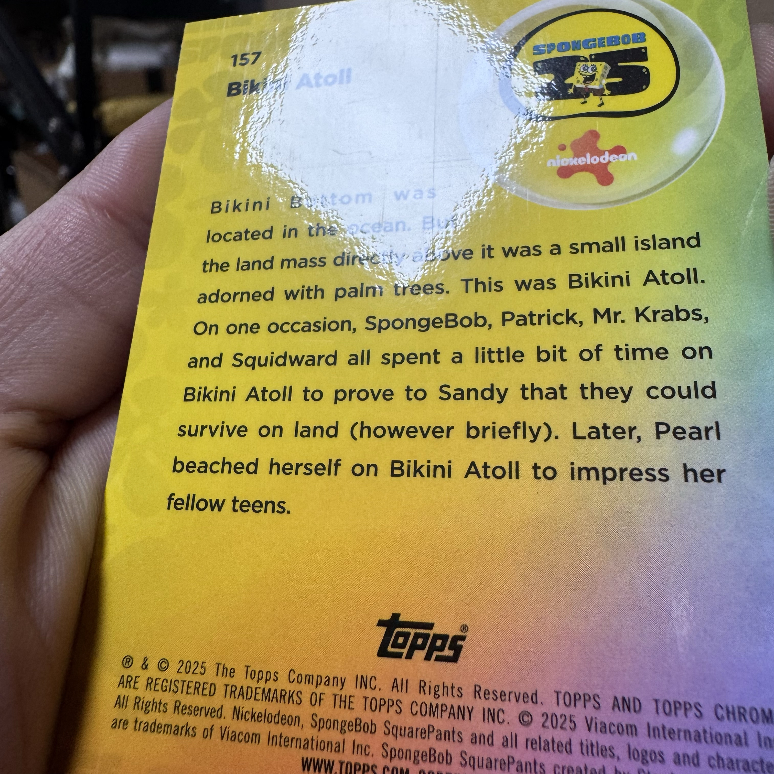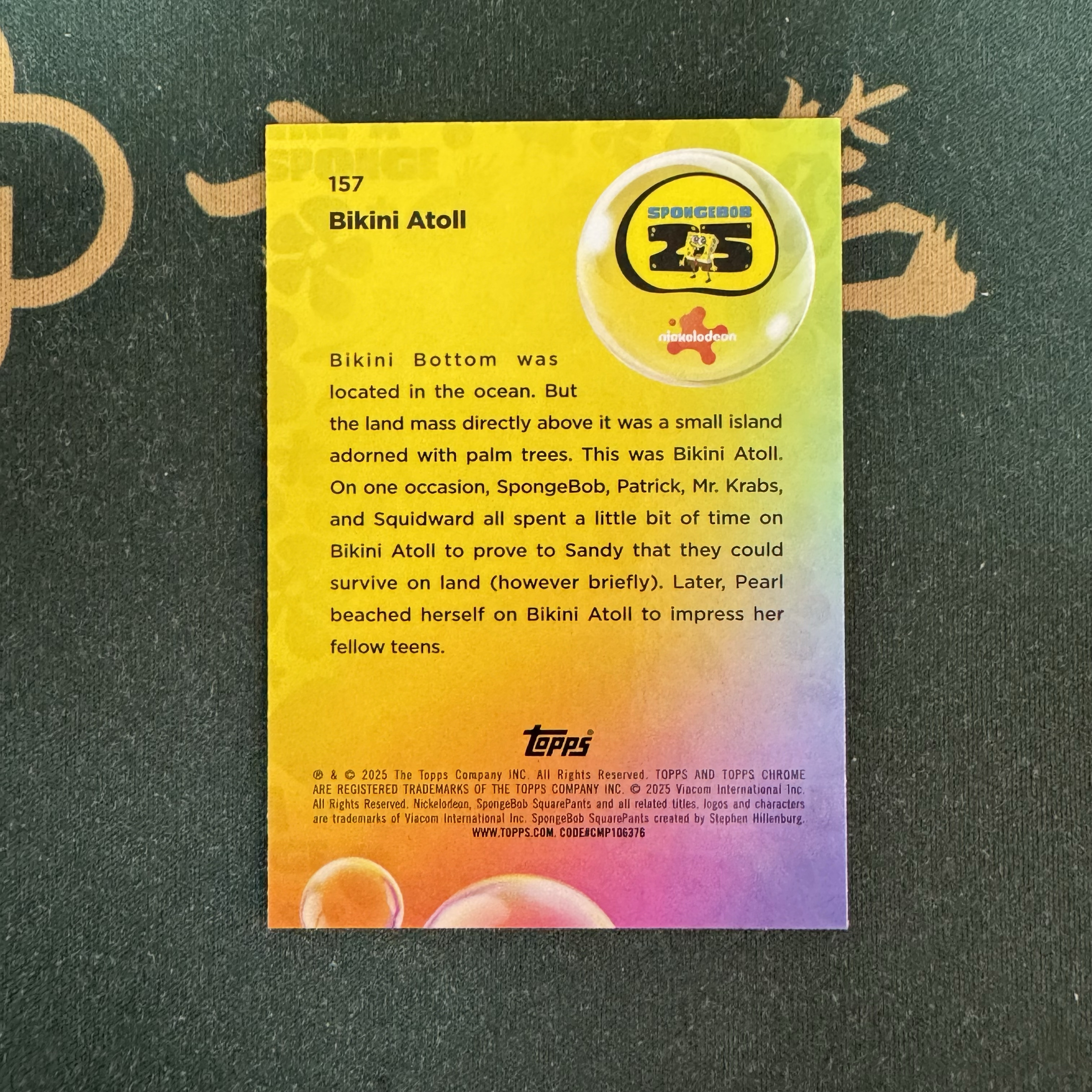 2025 Topps SpongeBob SquarePants 海绵宝宝 【十三笔】25周年 蓝宝石 #157 Bikini Atoll 99编 绿碎冰折 卡品如图(YY)