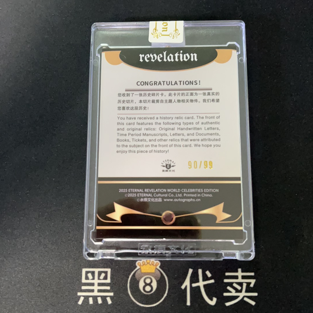 15【黑8代卖】2025 ETERNAL REVELATION 永痕文化 启示录系列 詹姆斯 加菲尔德 相关物件 历史切片 99编 折射 名人收藏卡 原封砖【ress】