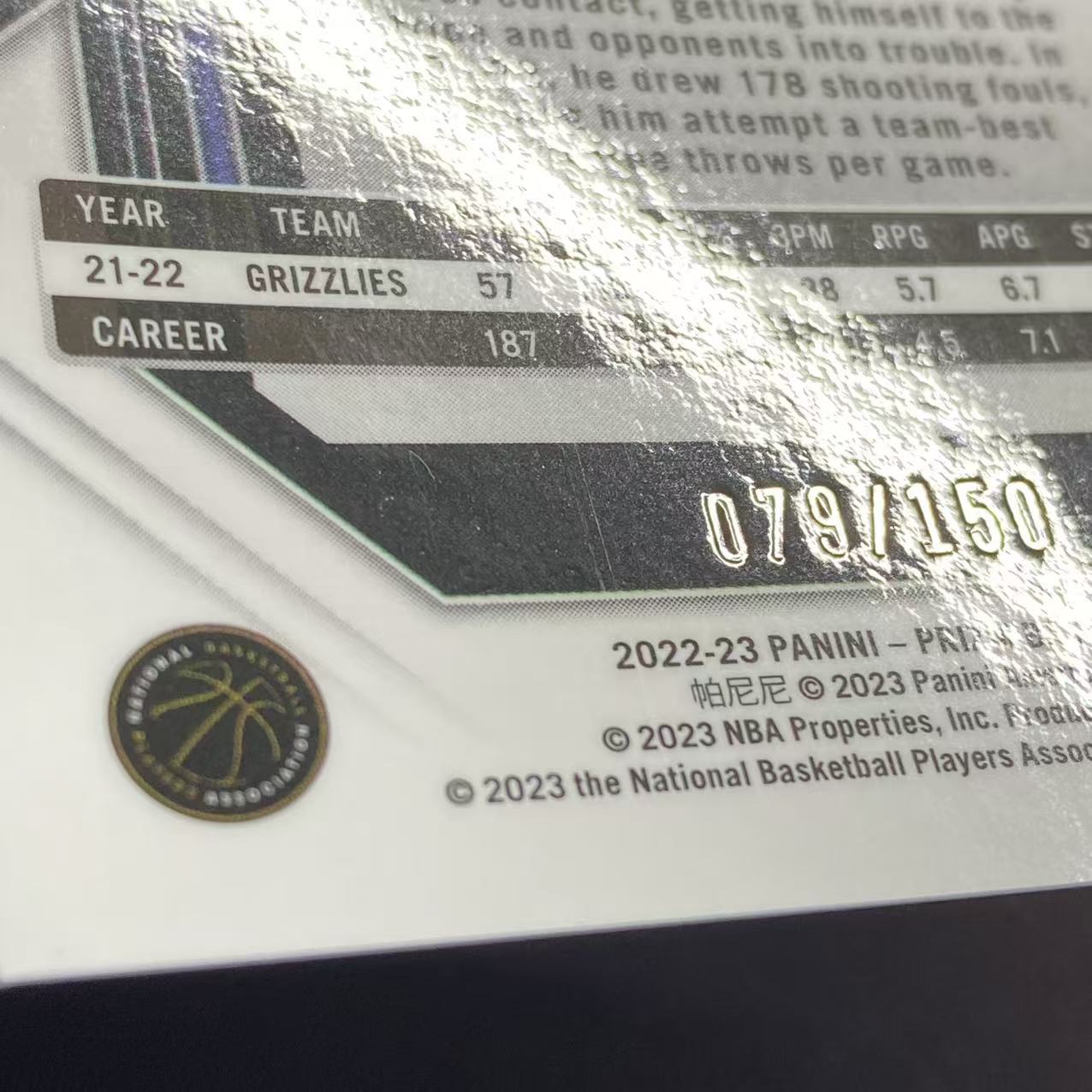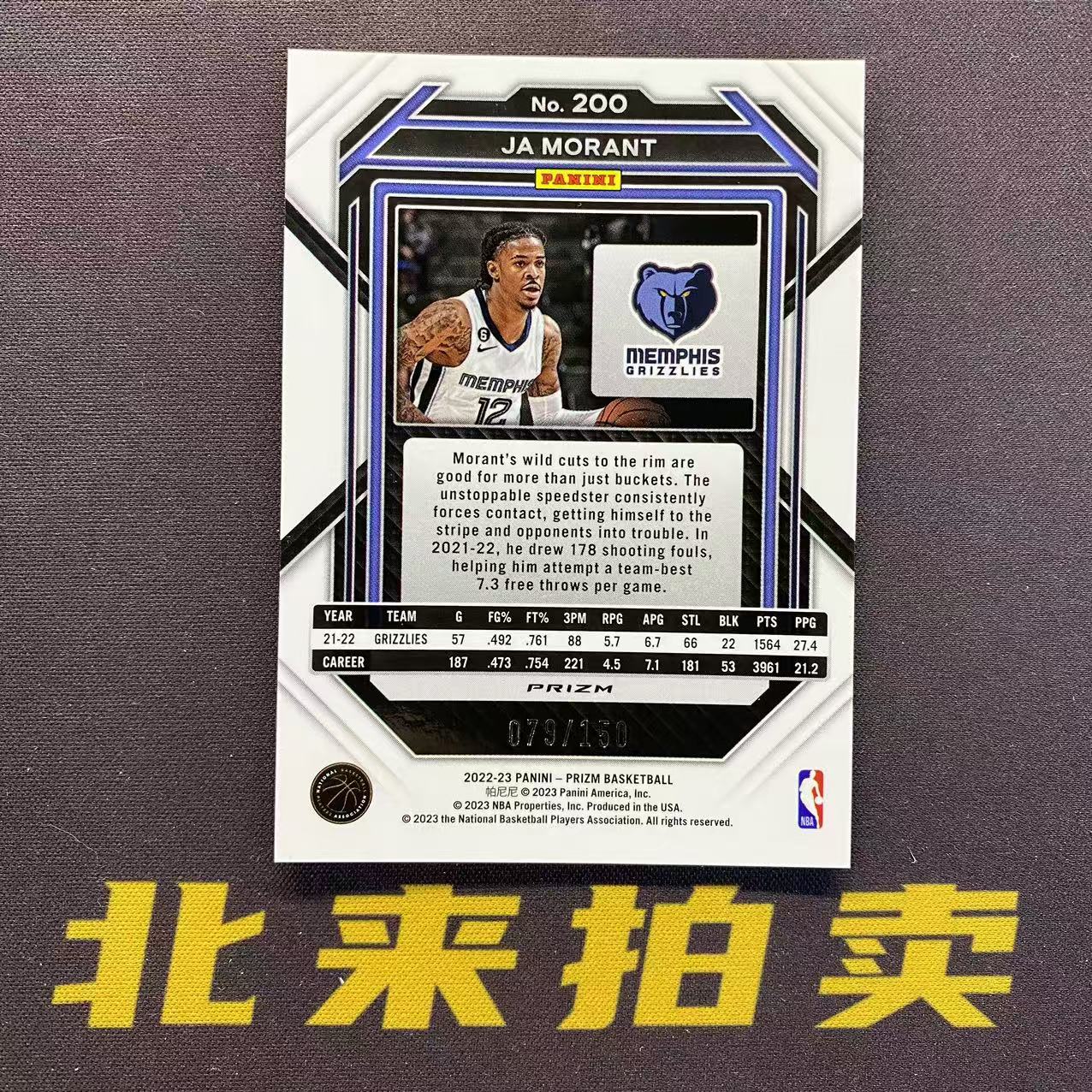 【北来拍卖】2022-23 PANINI prizm Ja Morant PZ 贾 莫兰特 腰王 枪王 灰熊 蓝泡泡折 折射 150编 瑕疵如图 W1【成成】227#