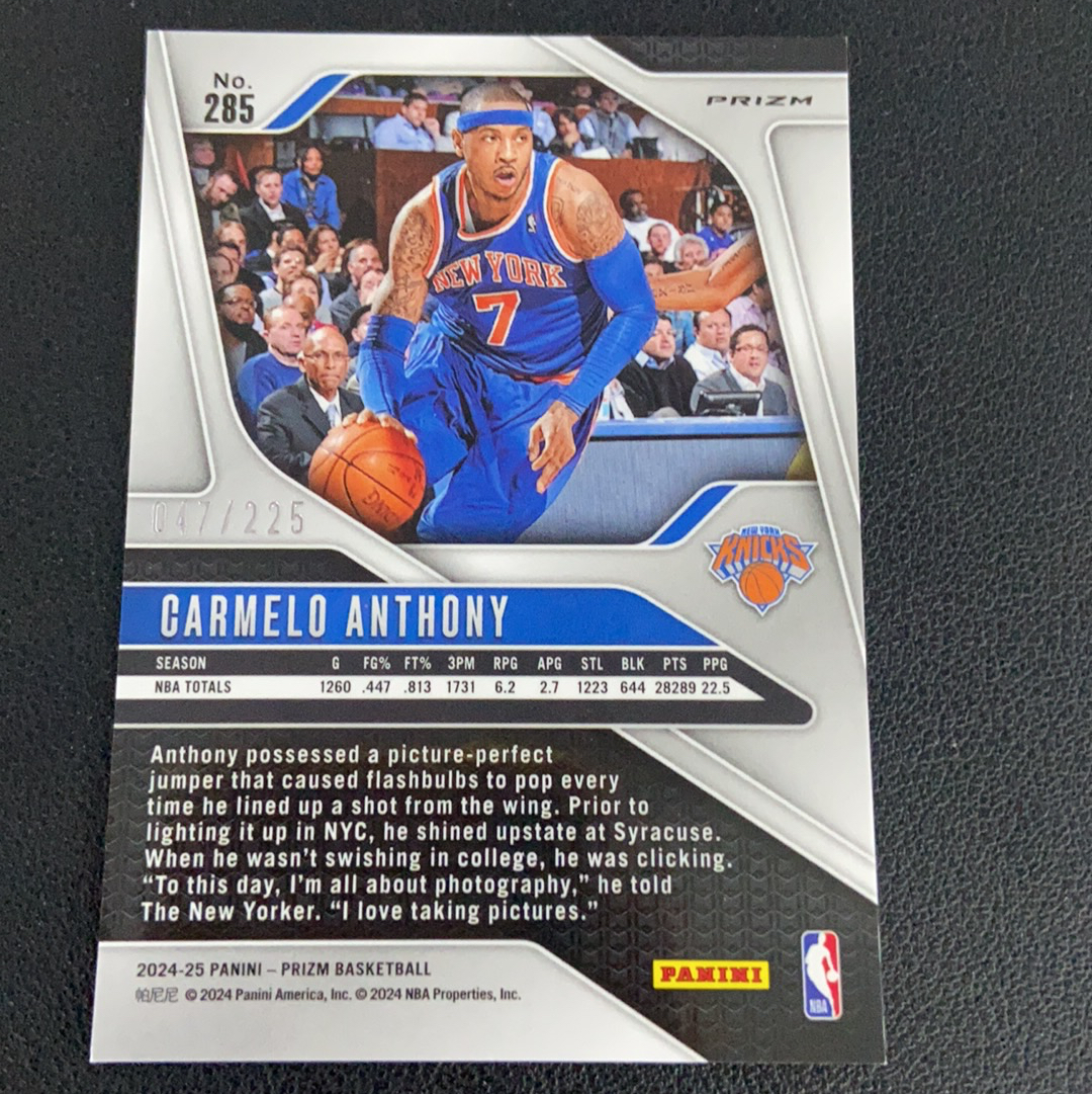 2024-25 Panini Prizm Carmelo Anthony 卡梅隆安东尼 pz 青碎冰 /225编 卡品如图