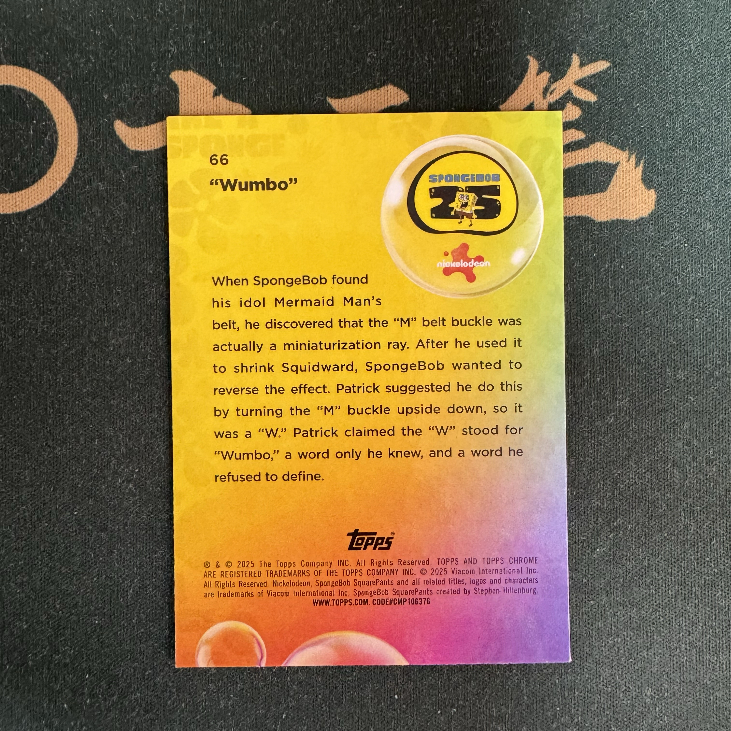 2025 Topps SpongeBob SquarePants 海绵宝宝 【十三笔】25周年 蓝宝石 #66 海绵宝宝 派大星 Wumbo 99编 绿碎冰折 横版 卡品如图(LZC)