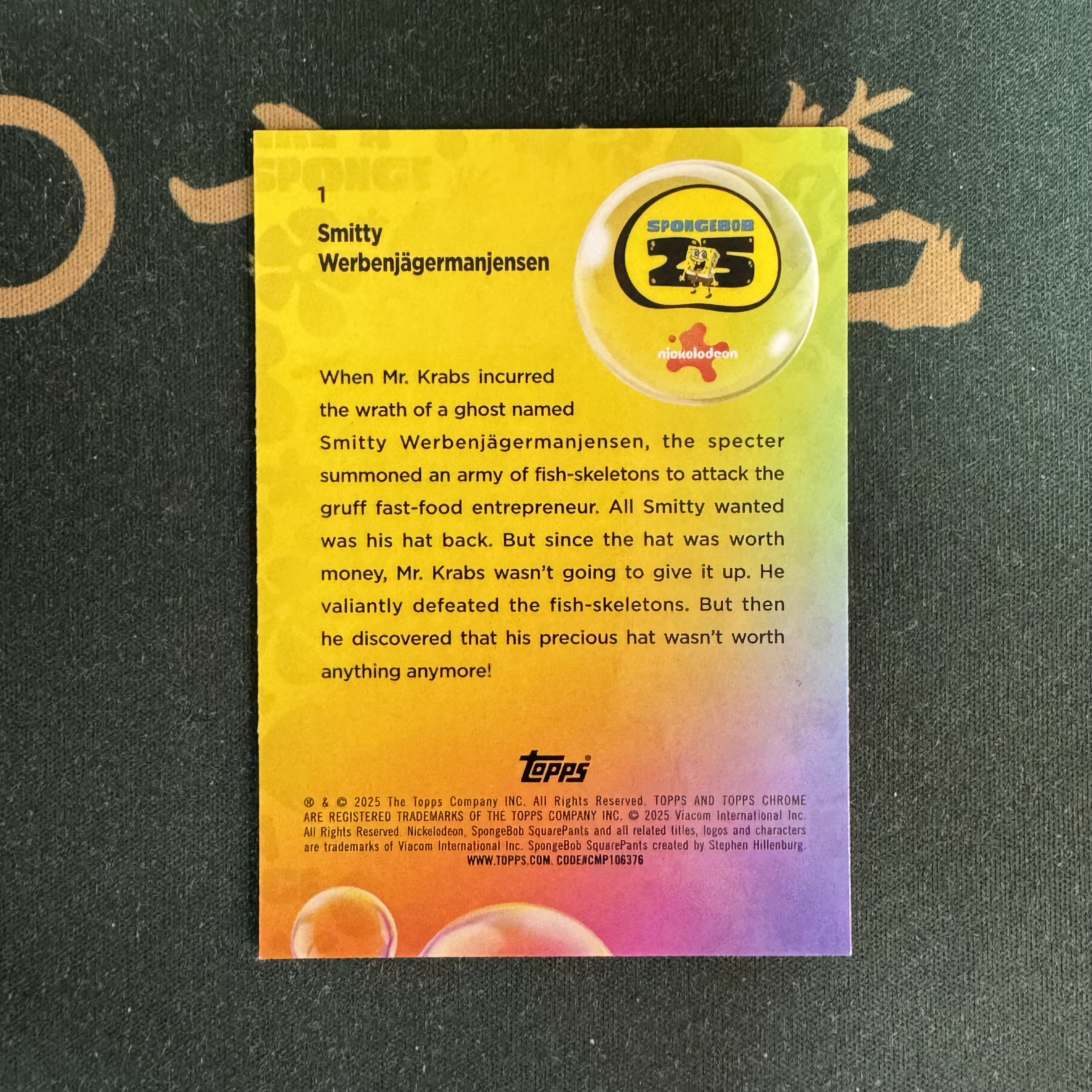2025 Topps SpongeBob SquarePants 海绵宝宝 【十三笔】25周年 蓝宝石 #1 杰克曼 杰森 99编 绿碎冰折 横版 卡品如图(LZC)