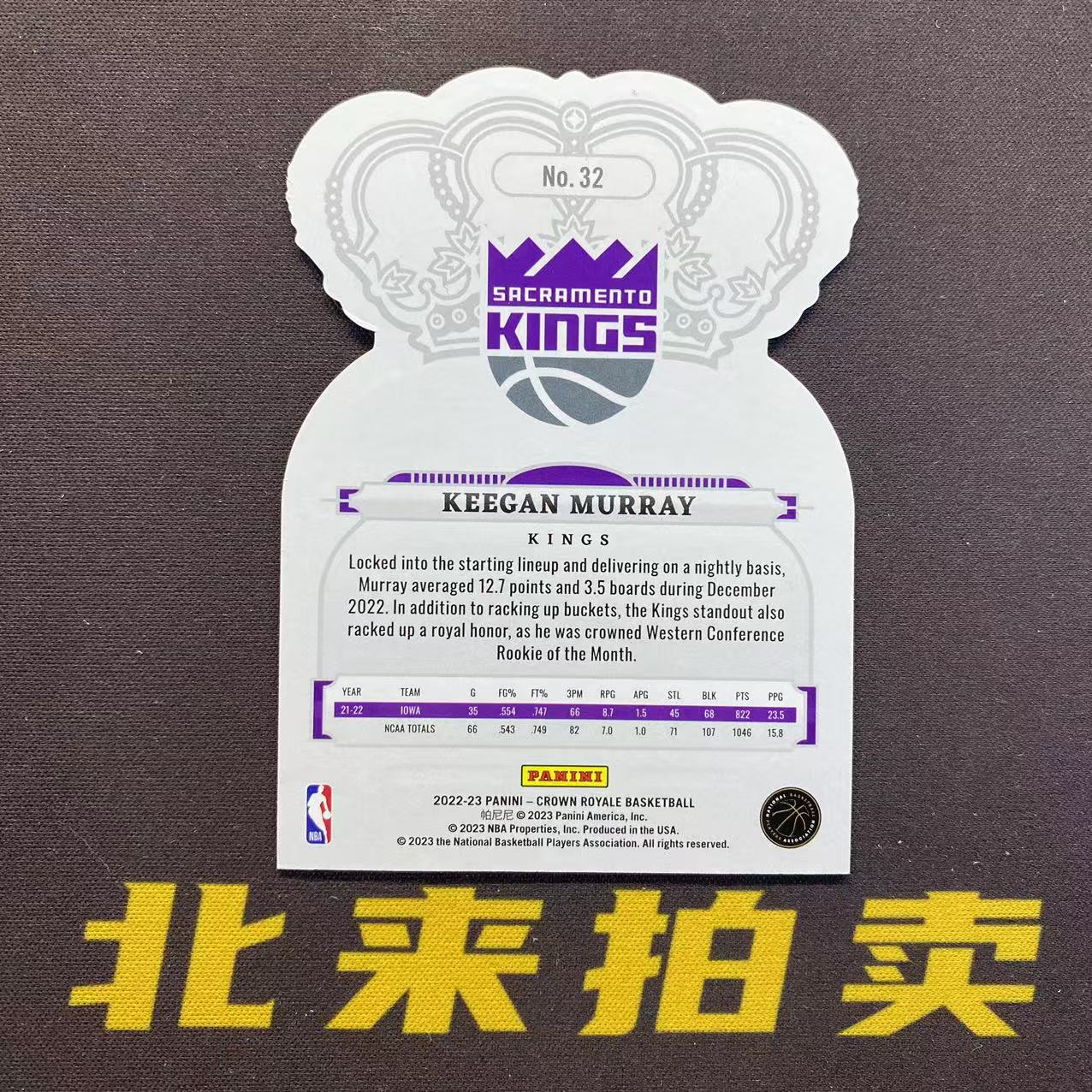 【北来拍卖】2022-23 PANINI Crown Royale Keegan Murray RC 皇冠 基根 默里 穆雷 国王 新秀 紫碎冰折 折射 25编 瑕疵如图 W1【成成】241#