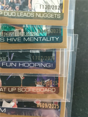 因卡淘系统不支持跨号合并,所以分开发货计算邮费,寄售代卖咨询:laauction。卡品如图,请仔细看图,如果无图片特殊展示瑕疵均为通行品相,一般prizm optic 等系列薄卡的小划痕,国宝IMM等系列厚卡的小白边小白角,都属于通行品相。艺术家 品控勿扰。中标后请等我们合并订单再点确认付款。付款时卡淘留言说明累计或邮寄,避免纠纷只发卡淘默认地址(我们会按照留言的先后顺序处理发货,请不要反复留言以免耽误给您回复)为了方便结算和卡片的累计查找,我们只合并当天的订单。邮费-顺丰(默认陆运):北京13元,非偏远外地18元,新疆西藏等偏远只发到付!超重只发到付!1000元以上的订单,建议买家自行保价,或用顺丰到付,所有快递未经保价,运输途中的损坏和丢失请于快递联系解决。(本店不支持任何普快发货,破损及丢失率太高)介意勿拍!中标可累计,累计时间2个月,每标累计金额不能超过500元,超过累计时间出现丢失或品相问题的,卡片问题由买家自行承担。累计的卡片请先付清卡款,然后卡淘上与我们联系操作,请于截标后3天转好,截标后5天未确认收到付款,一律卡淘投诉处理。