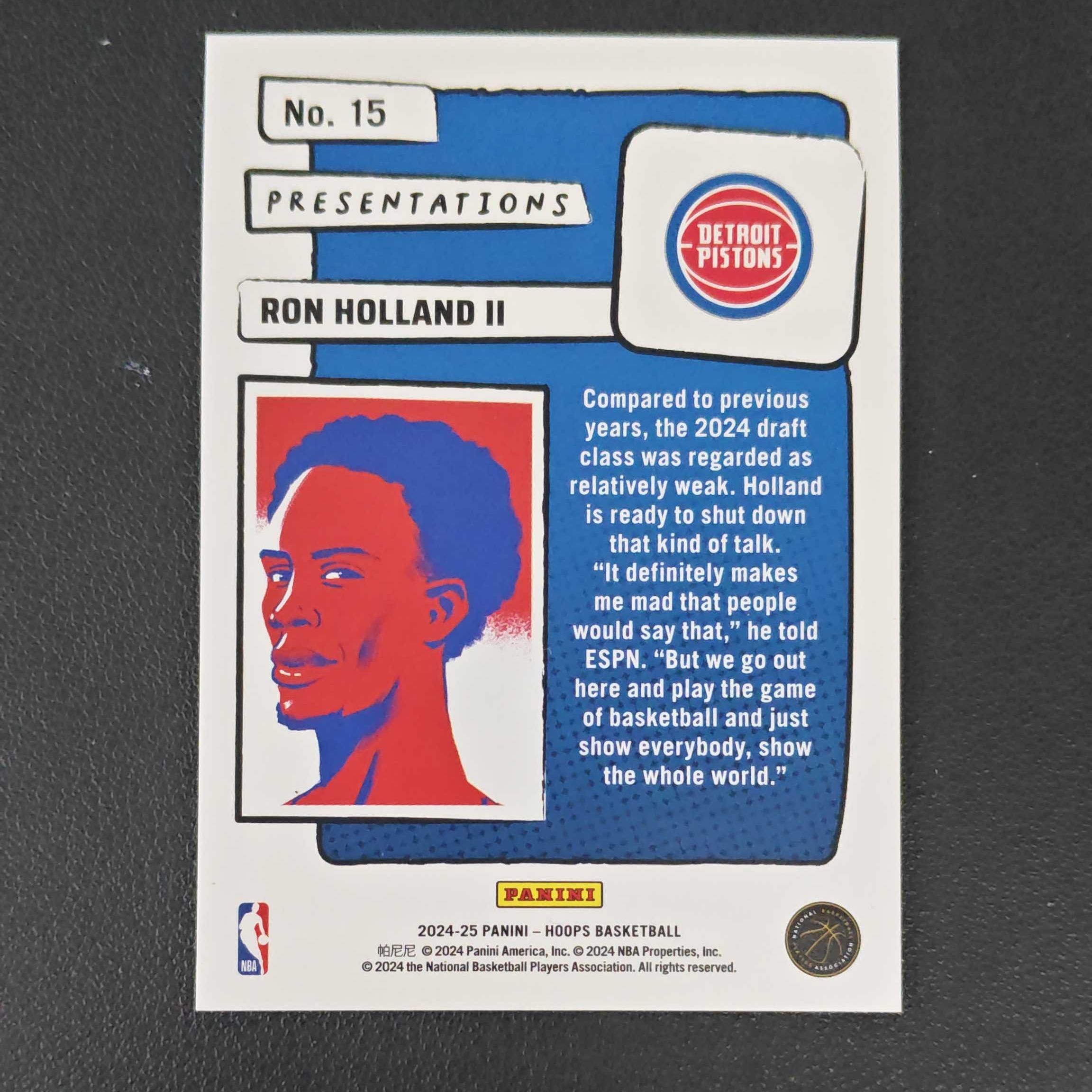 2024-25 Panini NBA Hoops Ron Holland RC 活塞 罗恩霍兰德 新秀 hoops 大比列 漫画大头 特卡 折射 专收必备 收藏必备 卡品如图 实卡美如画