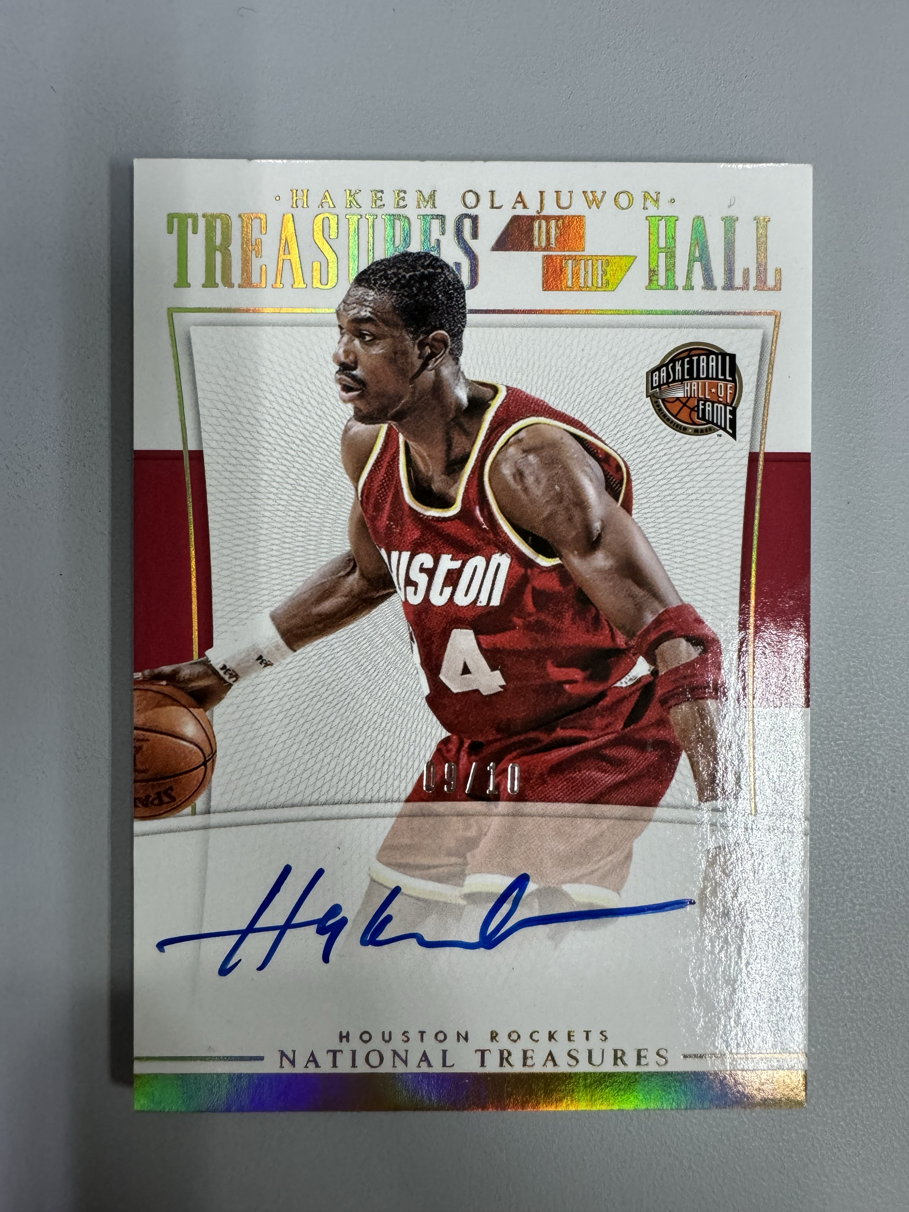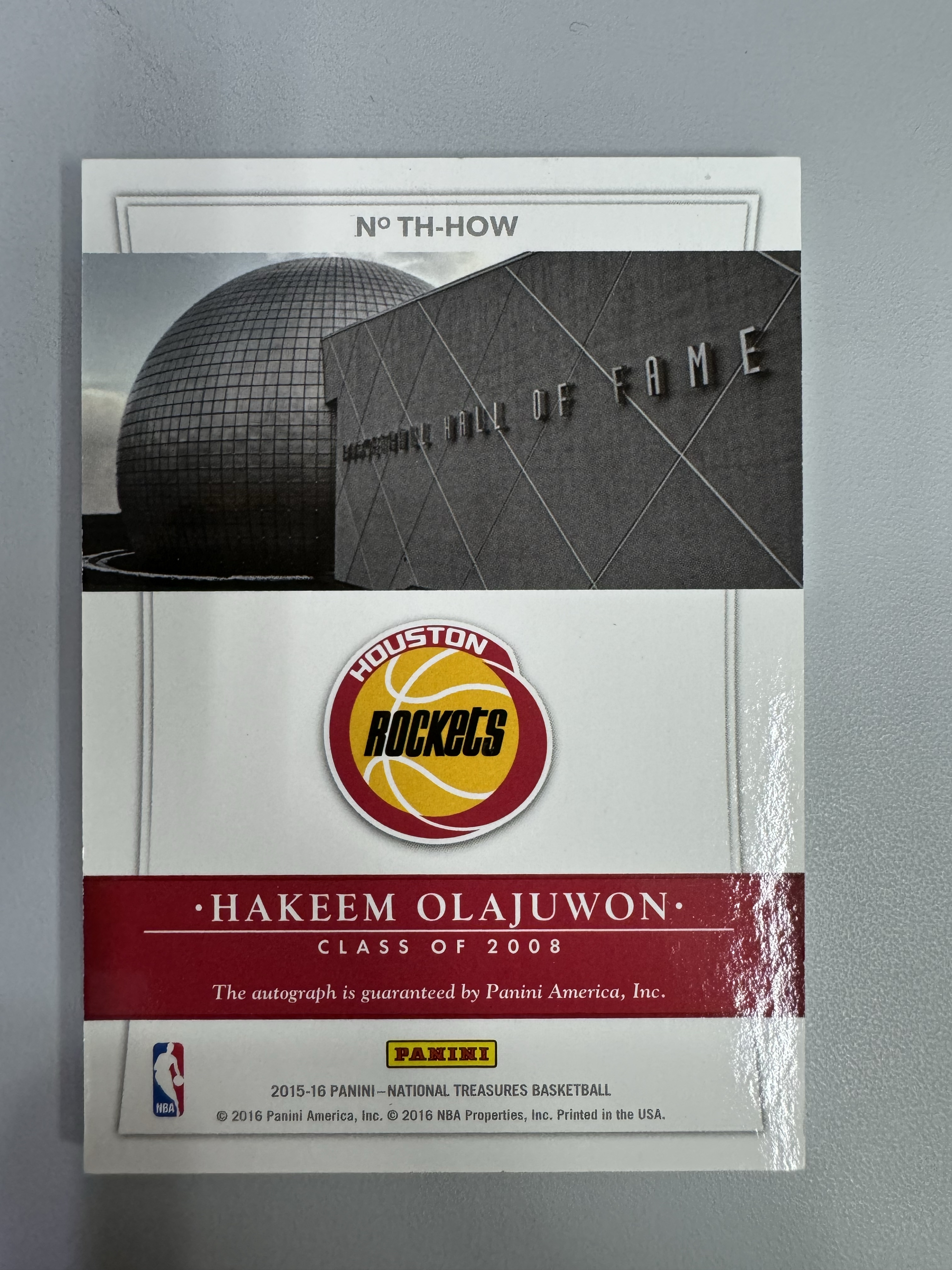 2015-16 Panini National Treasures Hakeem Olajuwon 国宝 火箭 奥拉朱旺 大梦 签字 卡签 名人堂 金平行 10编 收藏必备 卡品如图