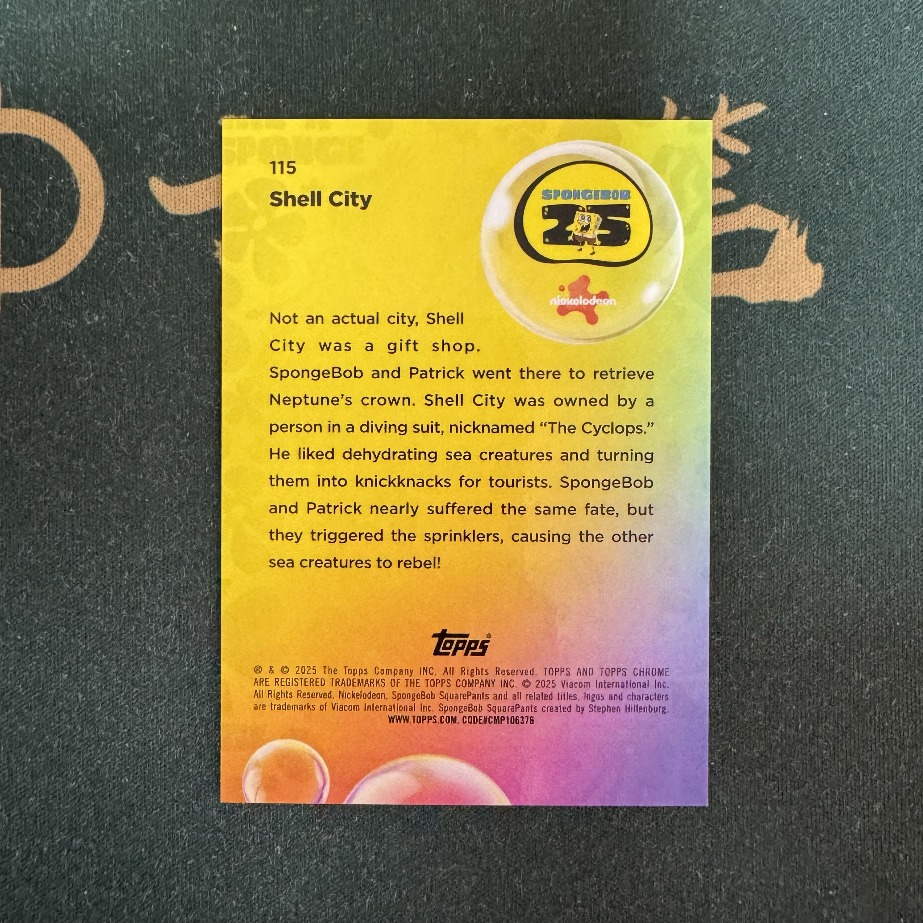 2025 Topps SpongeBob SquarePants 海绵宝宝 【十三笔】25周年 蓝宝石 #115 Shell City 25编 低编 橙碎冰折 横版 卡品如图(LZC)