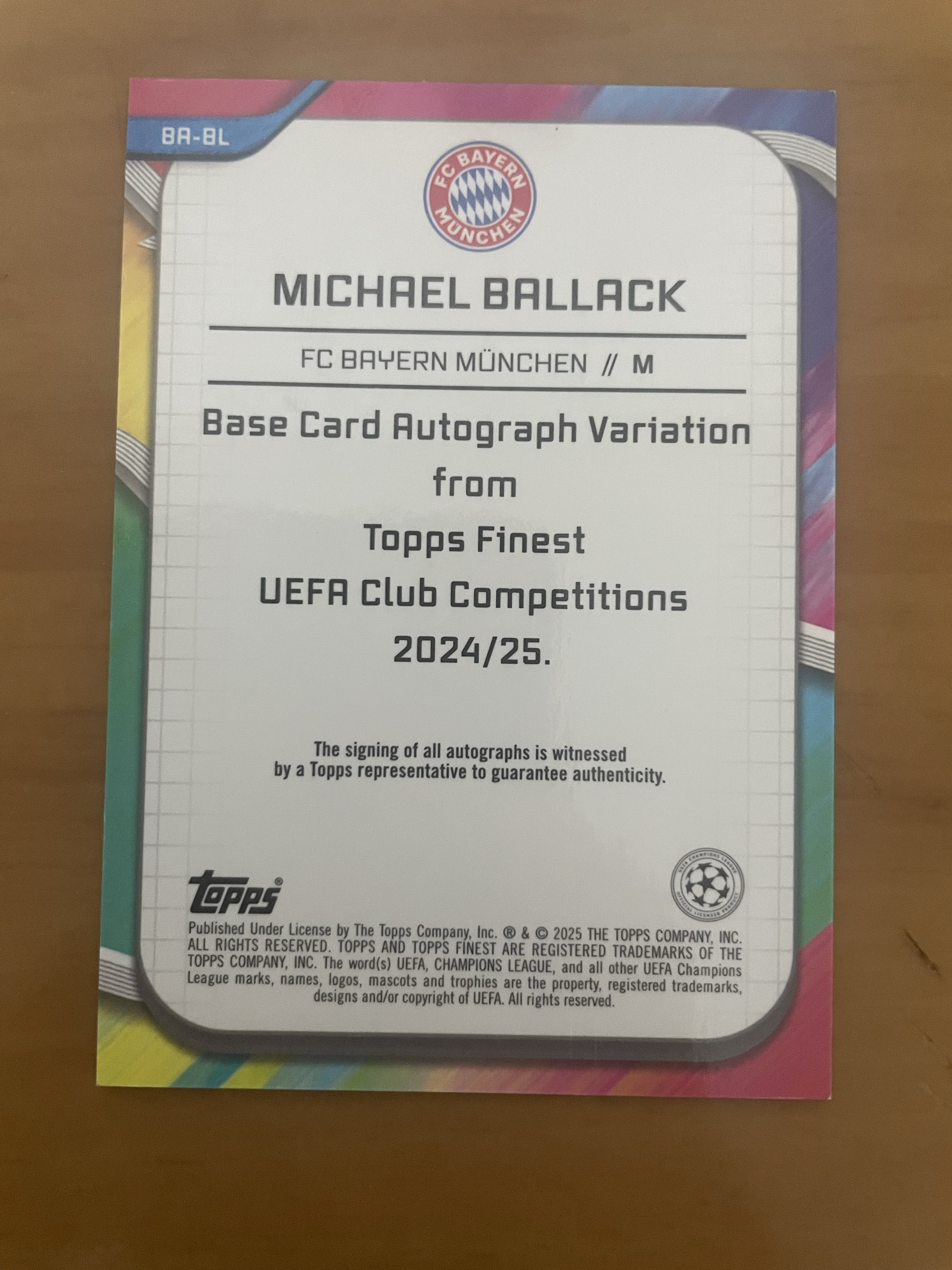 2024-25 Topps Finest Michael Ballack 欧冠 米夏埃尔 迈克尔 巴拉克 签字 50编 拜仁慕尼黑 收藏必备